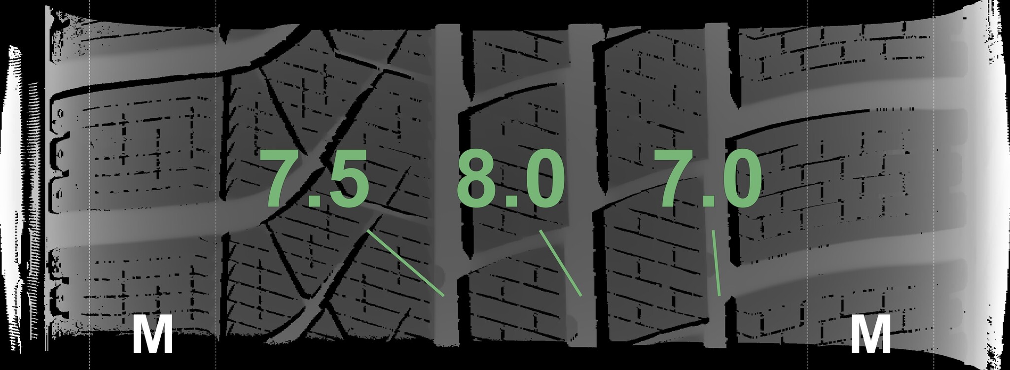 Condition | Profile depth | DOT | Rear Right | Demo studs still visible | 7.0 mm | 4623 |