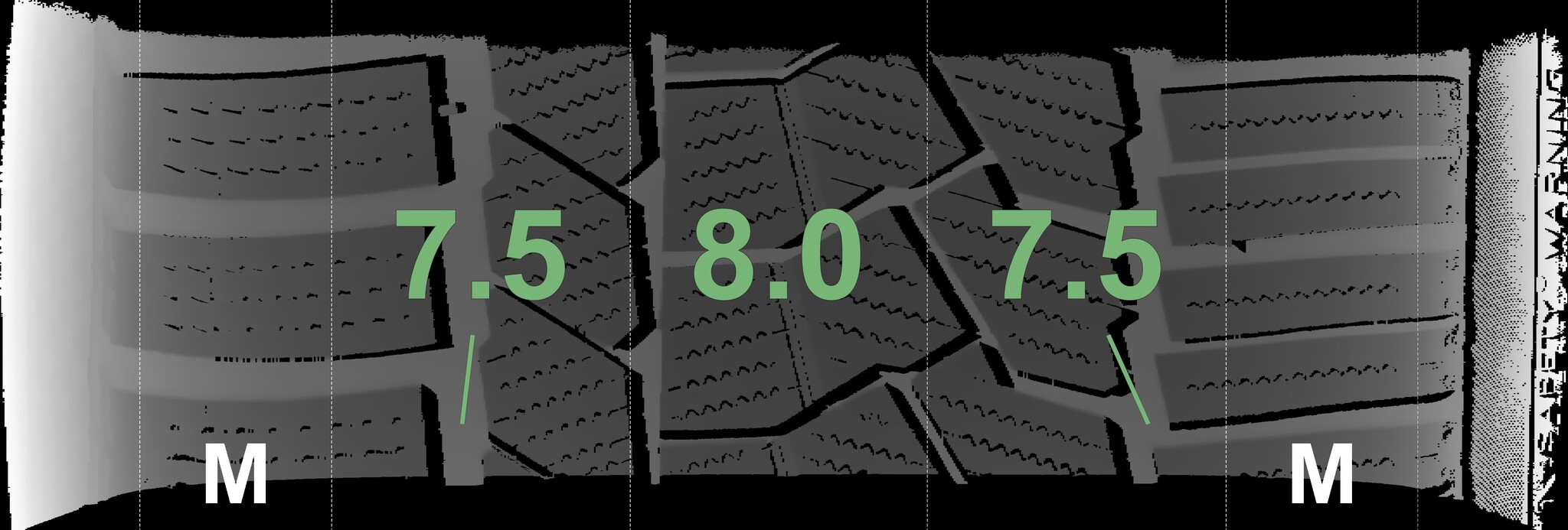 | Condition | Profile depth | DOT | Front Right | Used | 7.5 mm | 4224 |