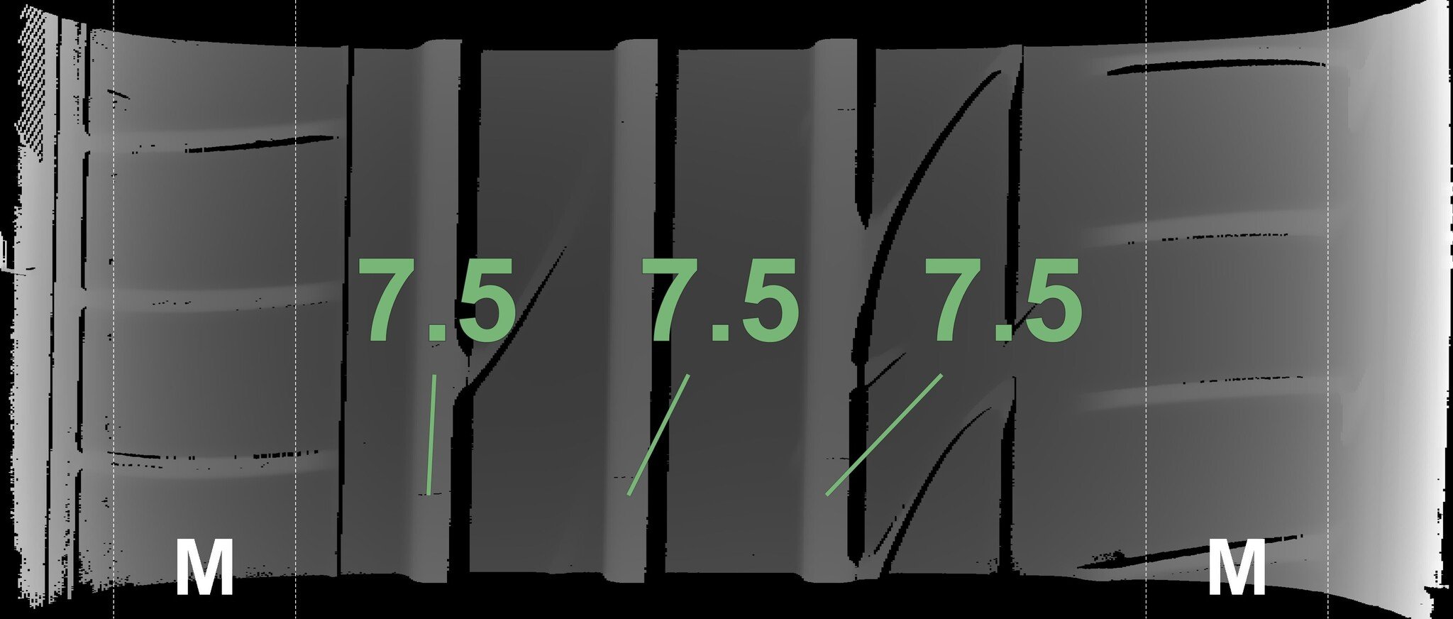 | Condition | Profile depth | DOT | Front Right | Used | 7.5 mm | 0219 |