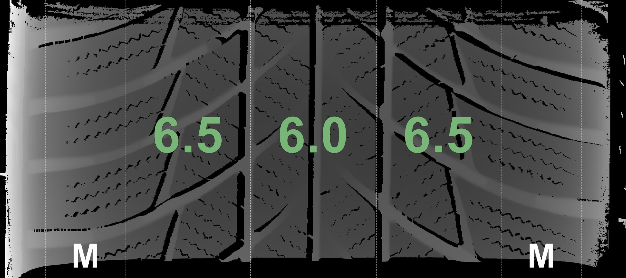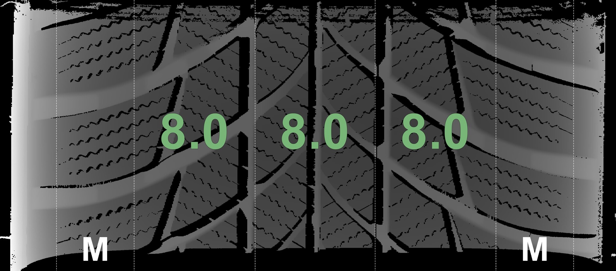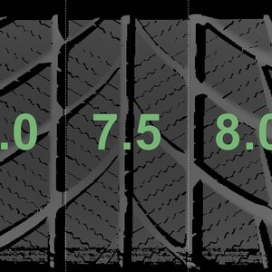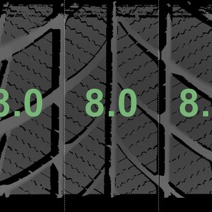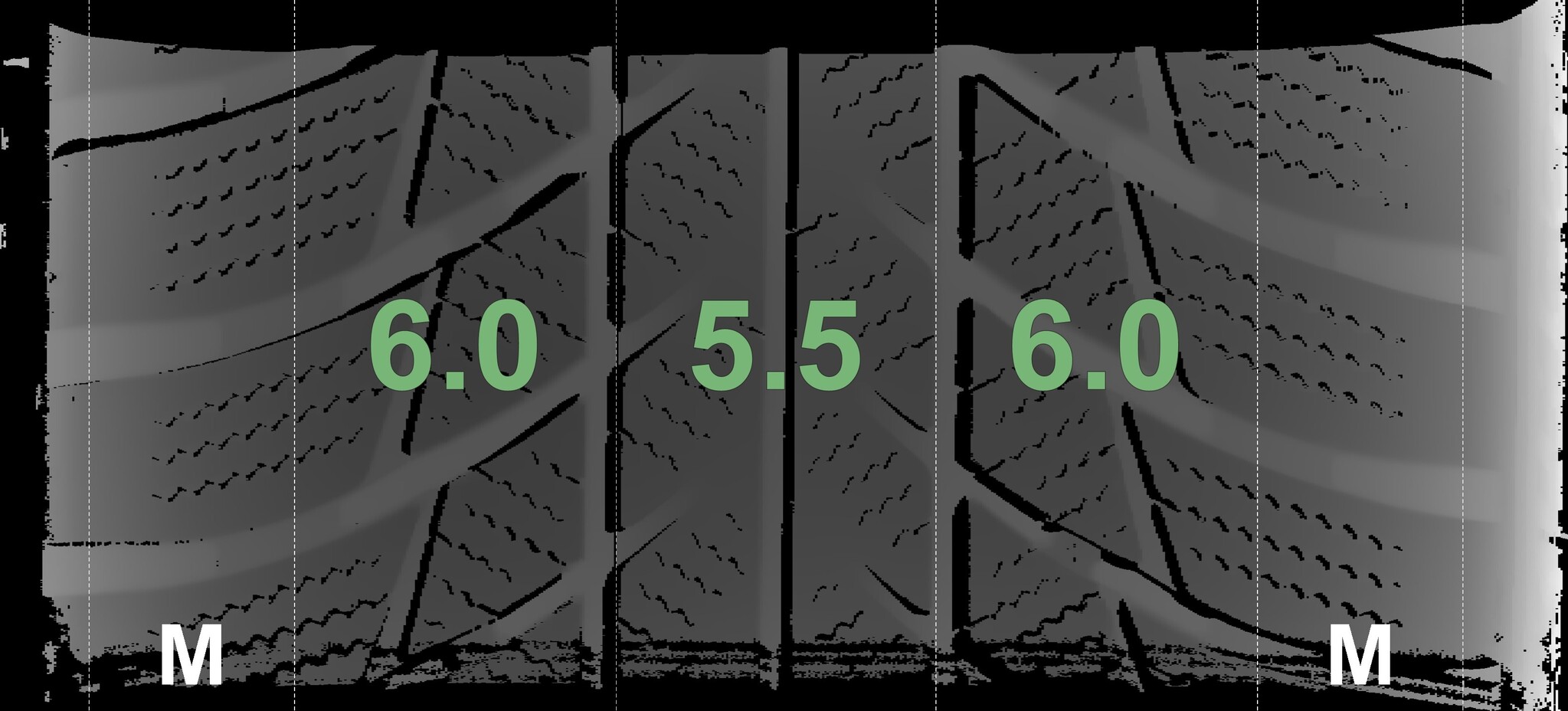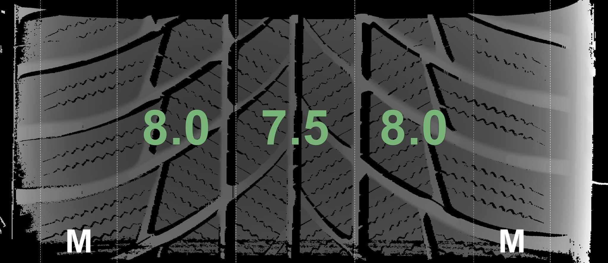 The measured tread depths and the details of the rims are shown above.