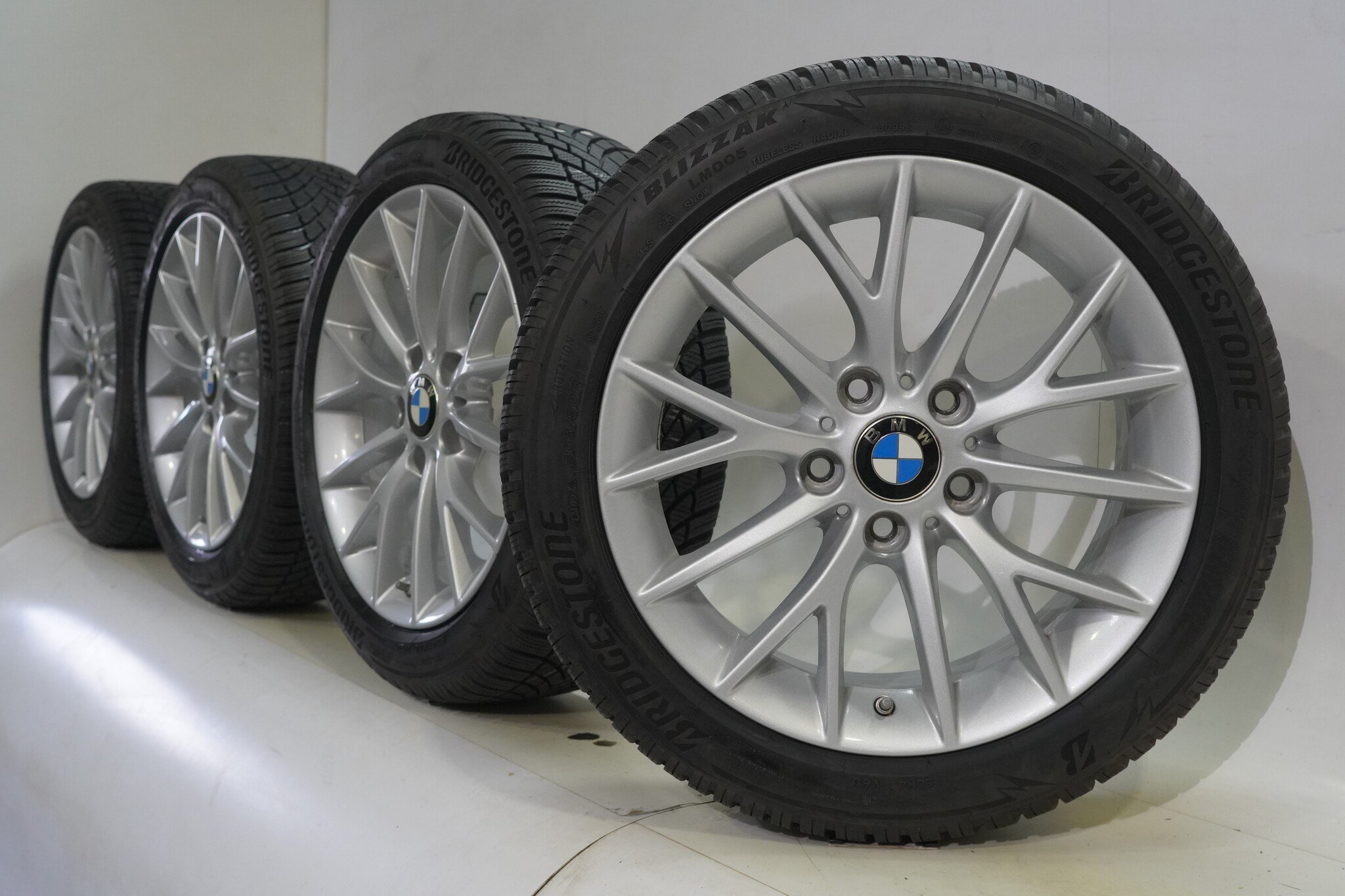 Original wheel set from BMW, styling 380, 17 inch rims with Bridgestone BLIZZAK LM005 winter tires. These rims are original rims from the BMW brand and suitable for: BMW 1 2 series F20 F21 F22 F23.