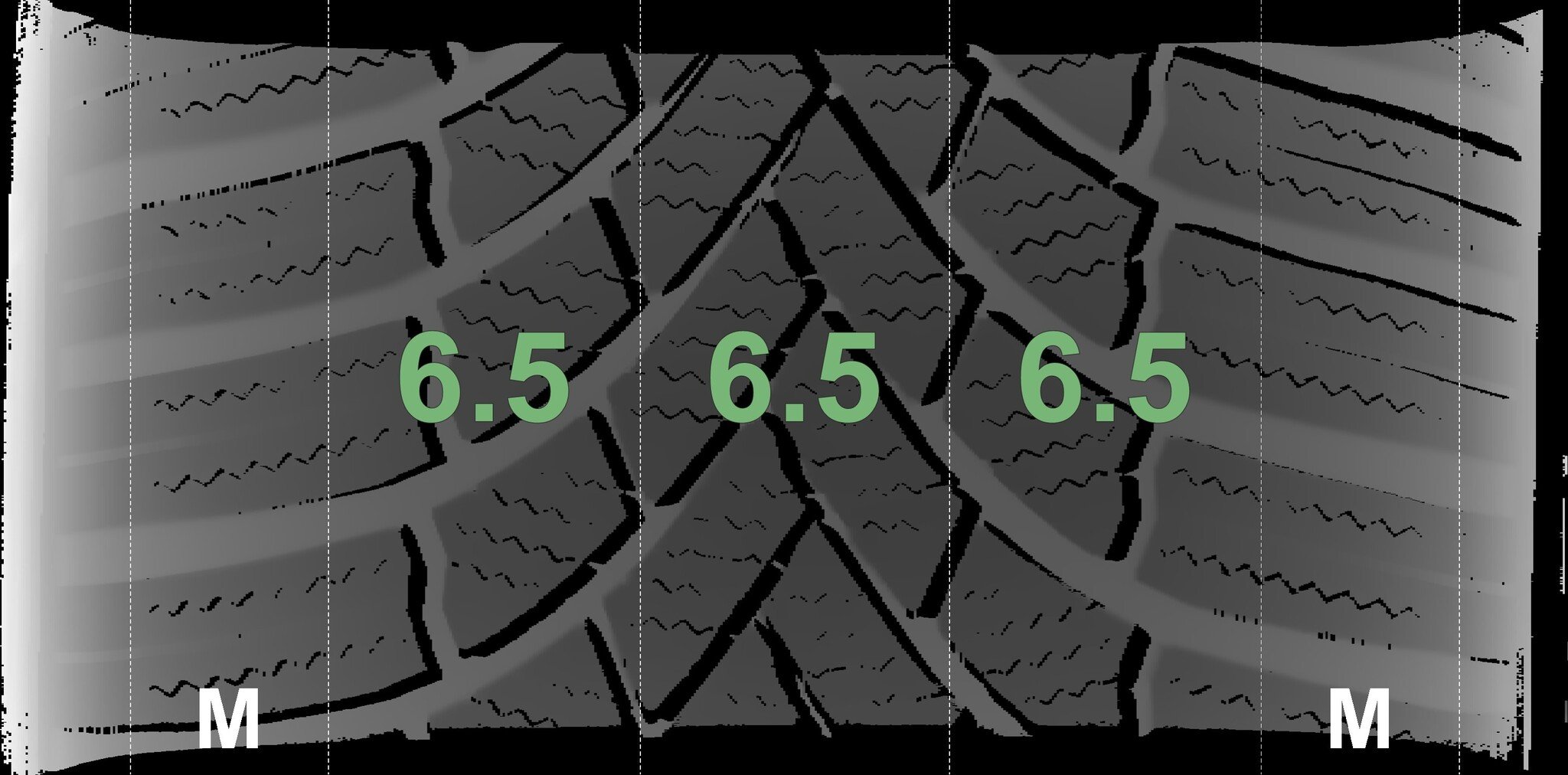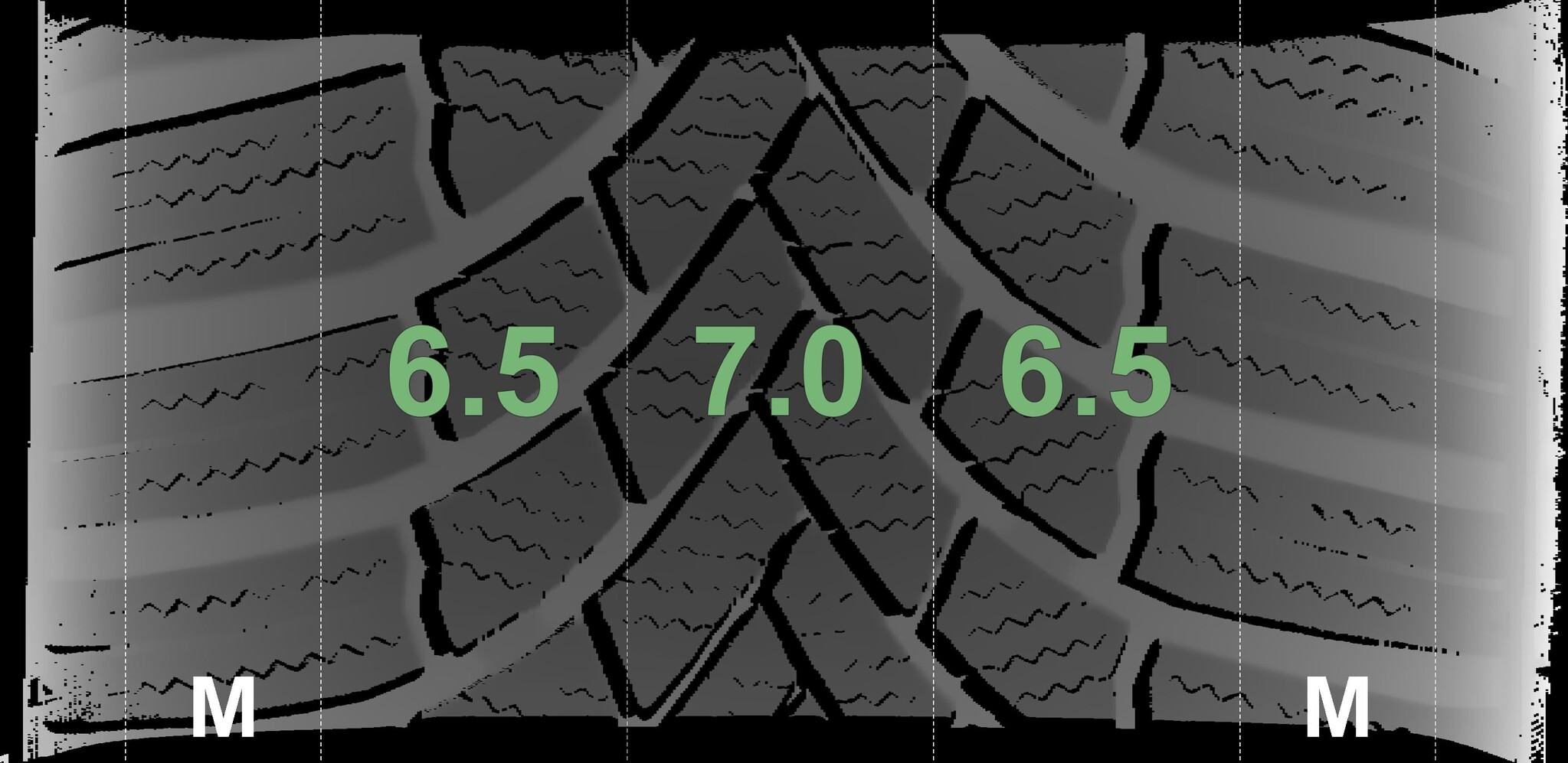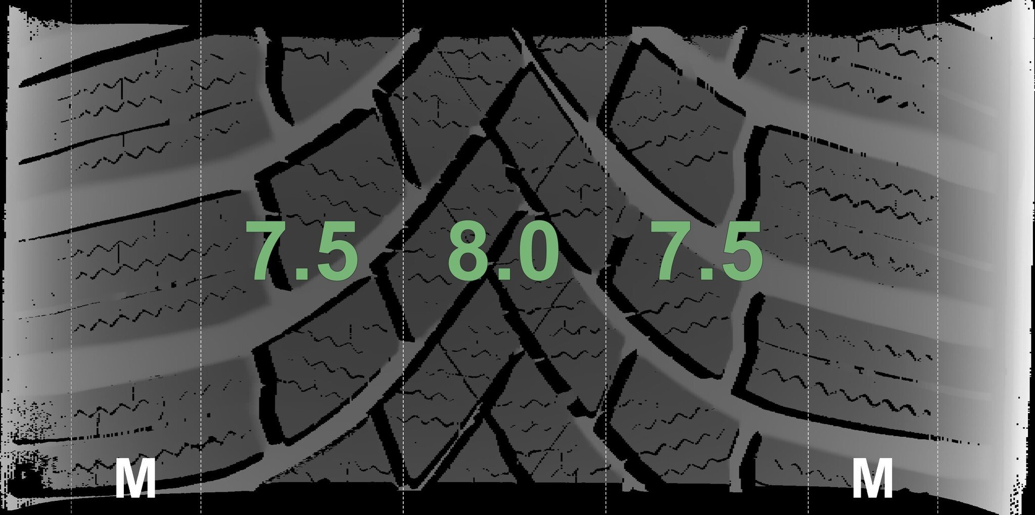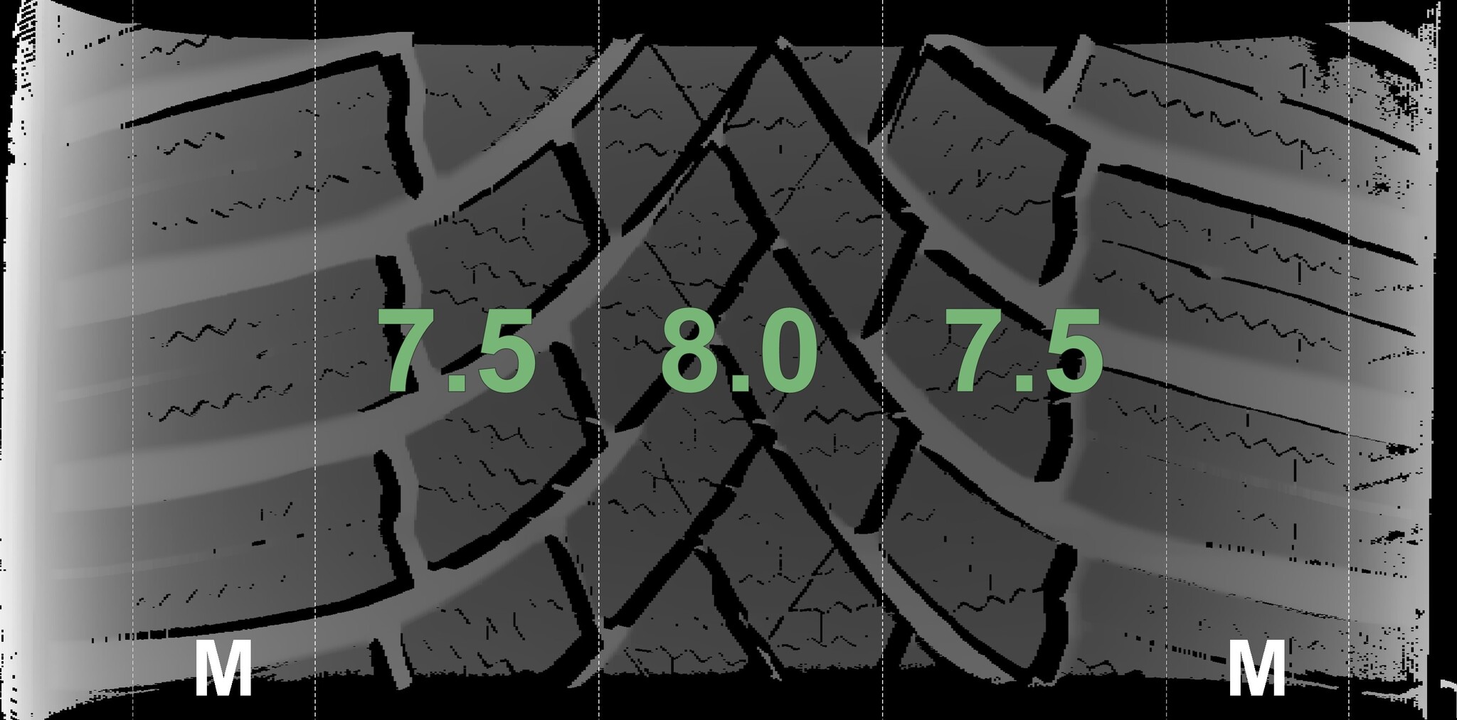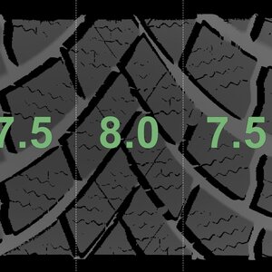 The measured tread depths and the details of the rims are shown above.
