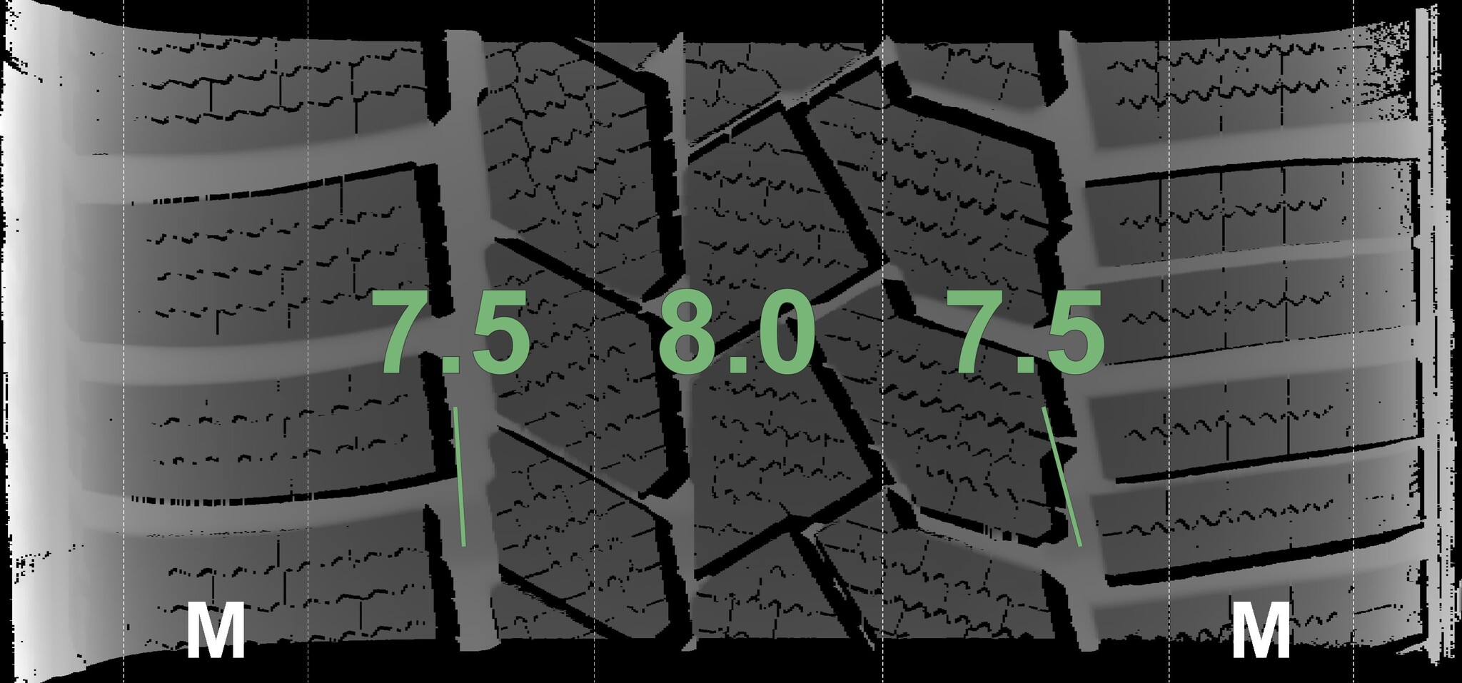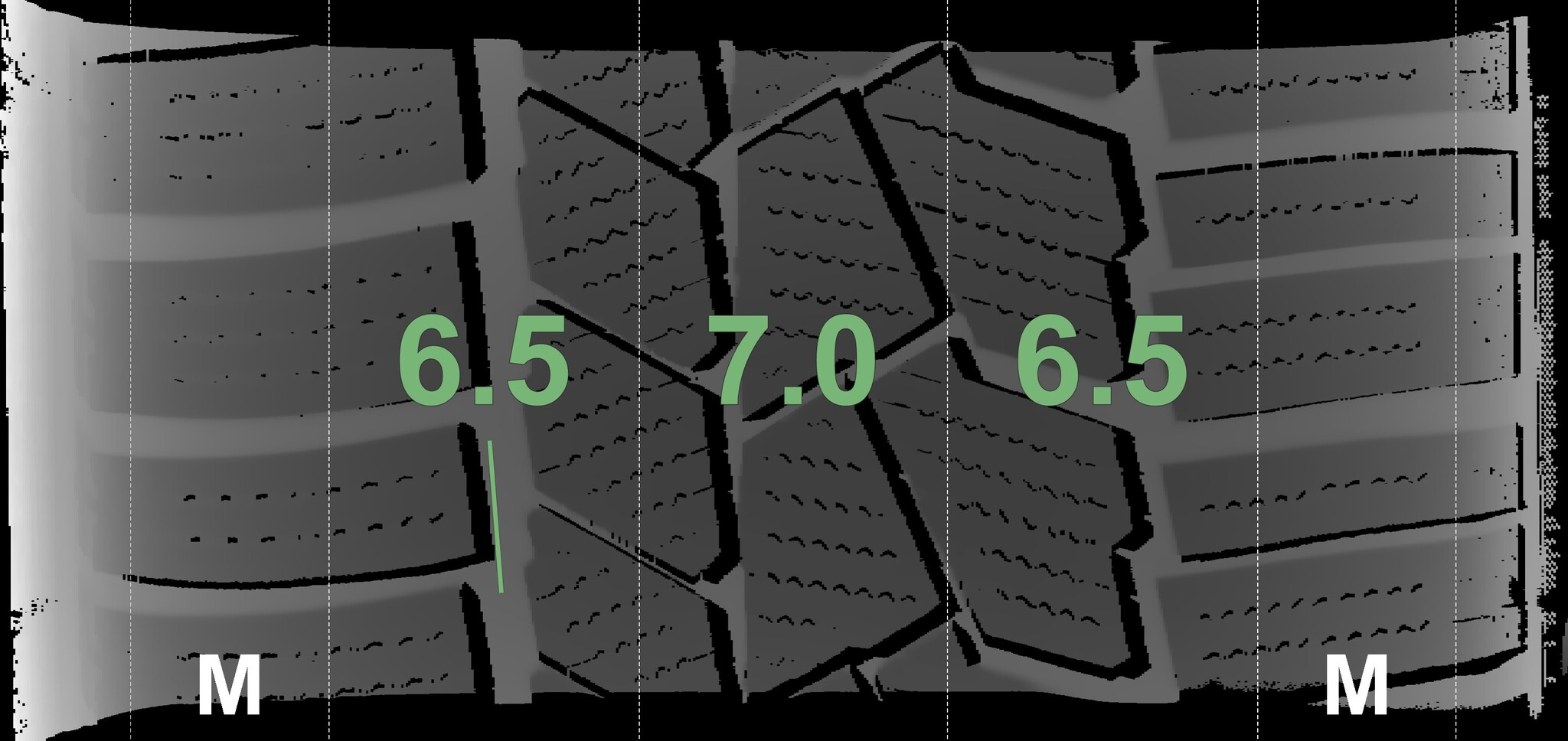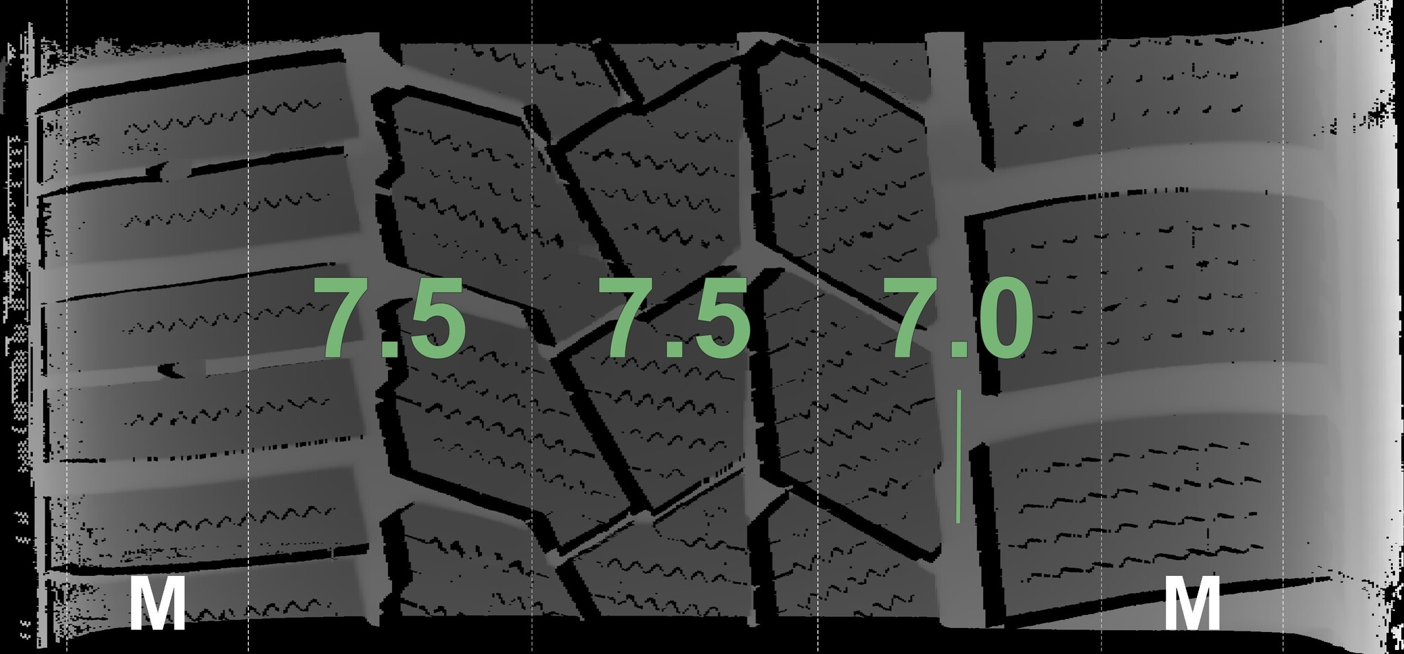 Condition | Profile depth | DOT | Front Left | Used | 6.5 mm | 4320 |