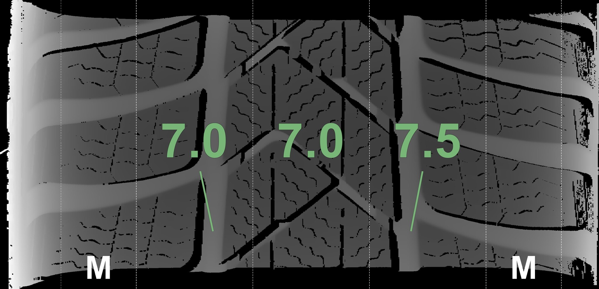 | Condition | Profile depth | DOT | Front Left | Used | 7.0 mm | 3121 |