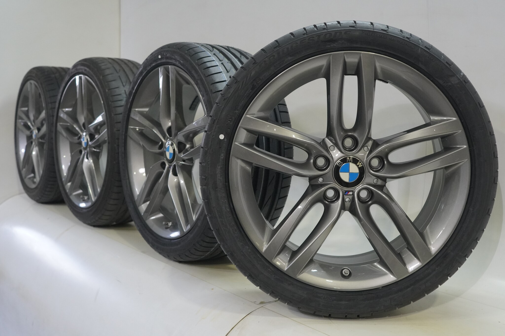 Original wheel set from BMW, styling 461M, 18 inch rims with Bridgestone Potenza_S001 RFT Runflat Summer tires. These rims are original rims from the brand BMW and suitable for: BMW 1 2 Series F20 F21 F22 F23.