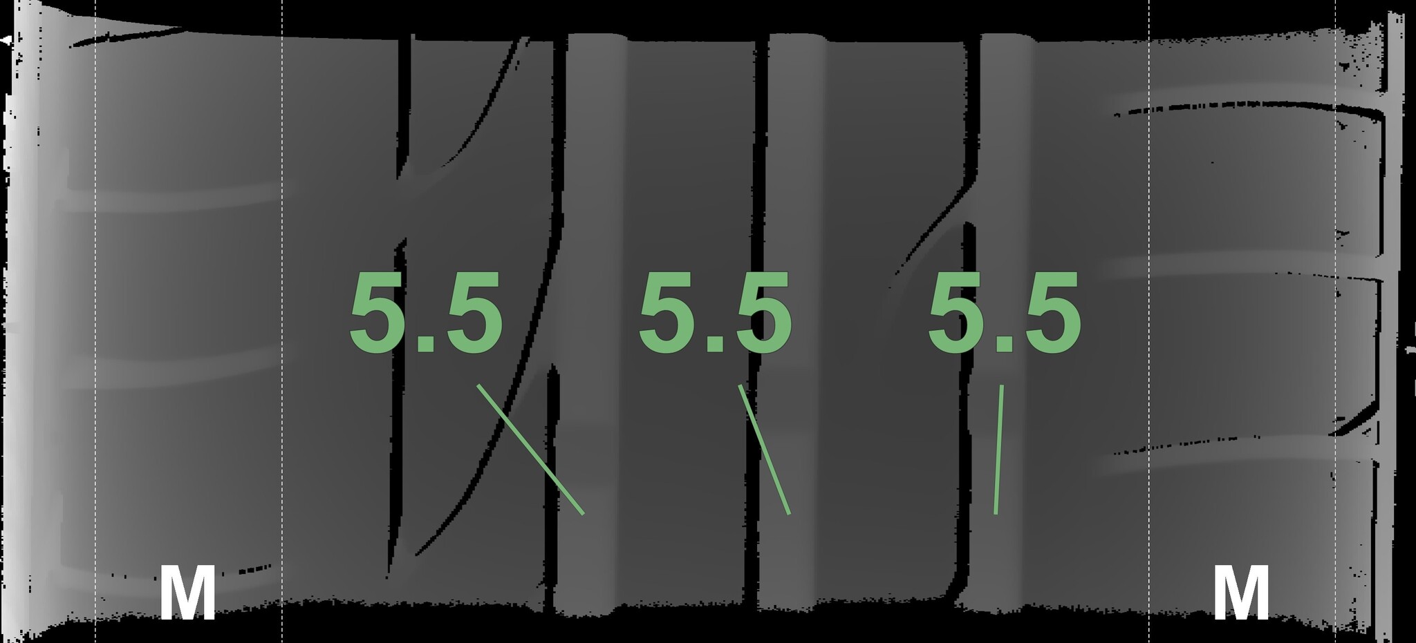 Condition | Profile depth | DOT | Front Left Used | 5.5 mm | 1021