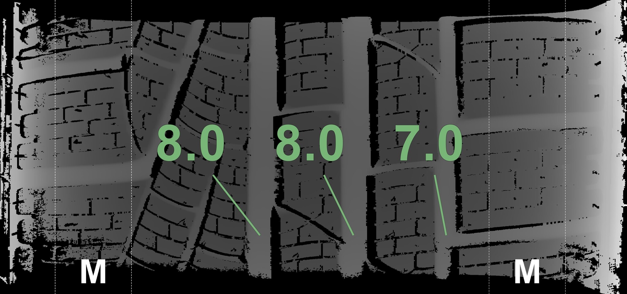 | Condition | Profile depth | DOT | Front Right | New | 7.0 mm | 0421 |