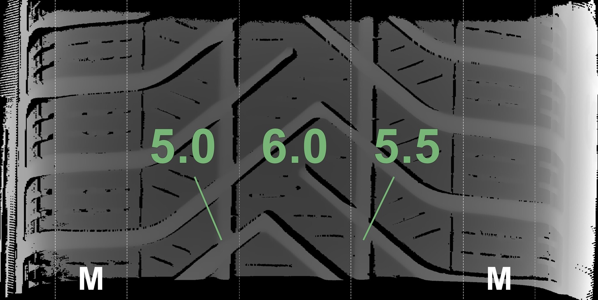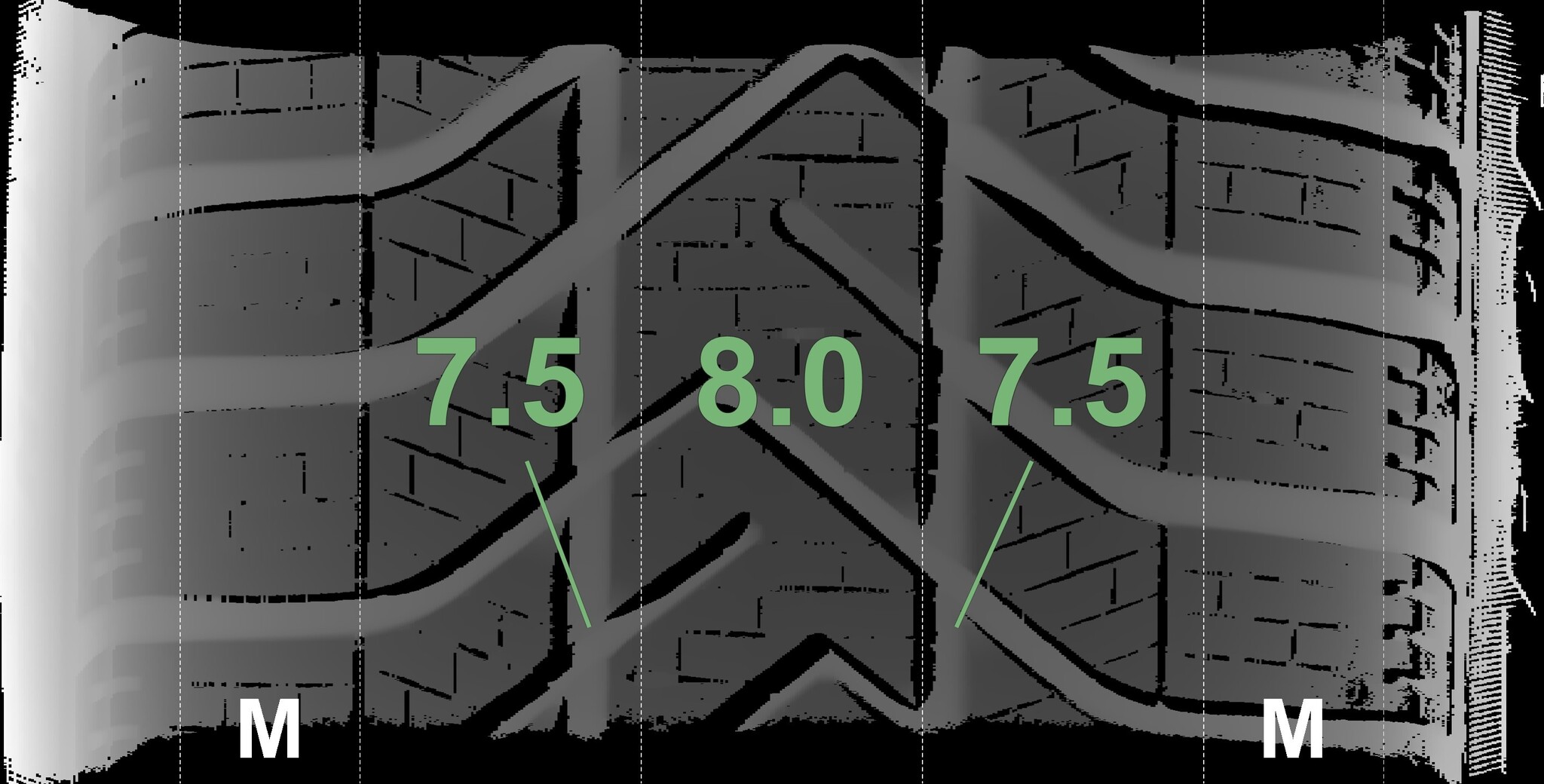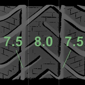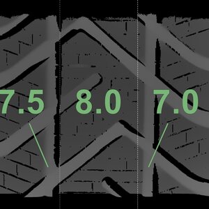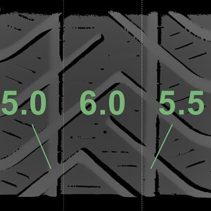 The measured tread depths and the details of the rims are shown above.