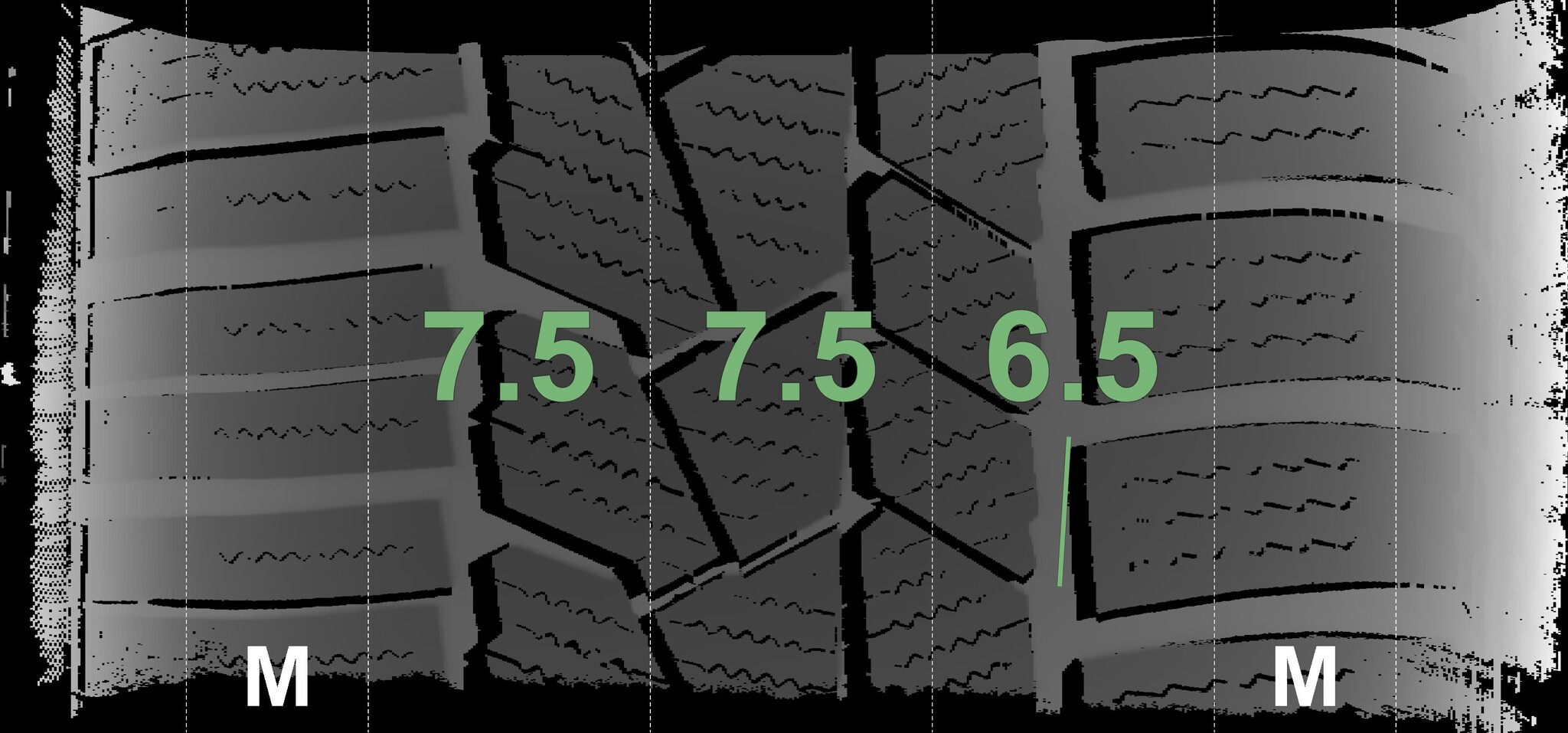 | Condition | Profile depth | DOT | Front Right | Used | 5.5 mm | 2219 |