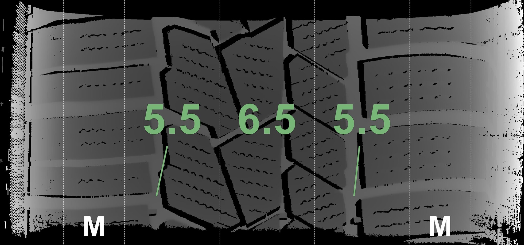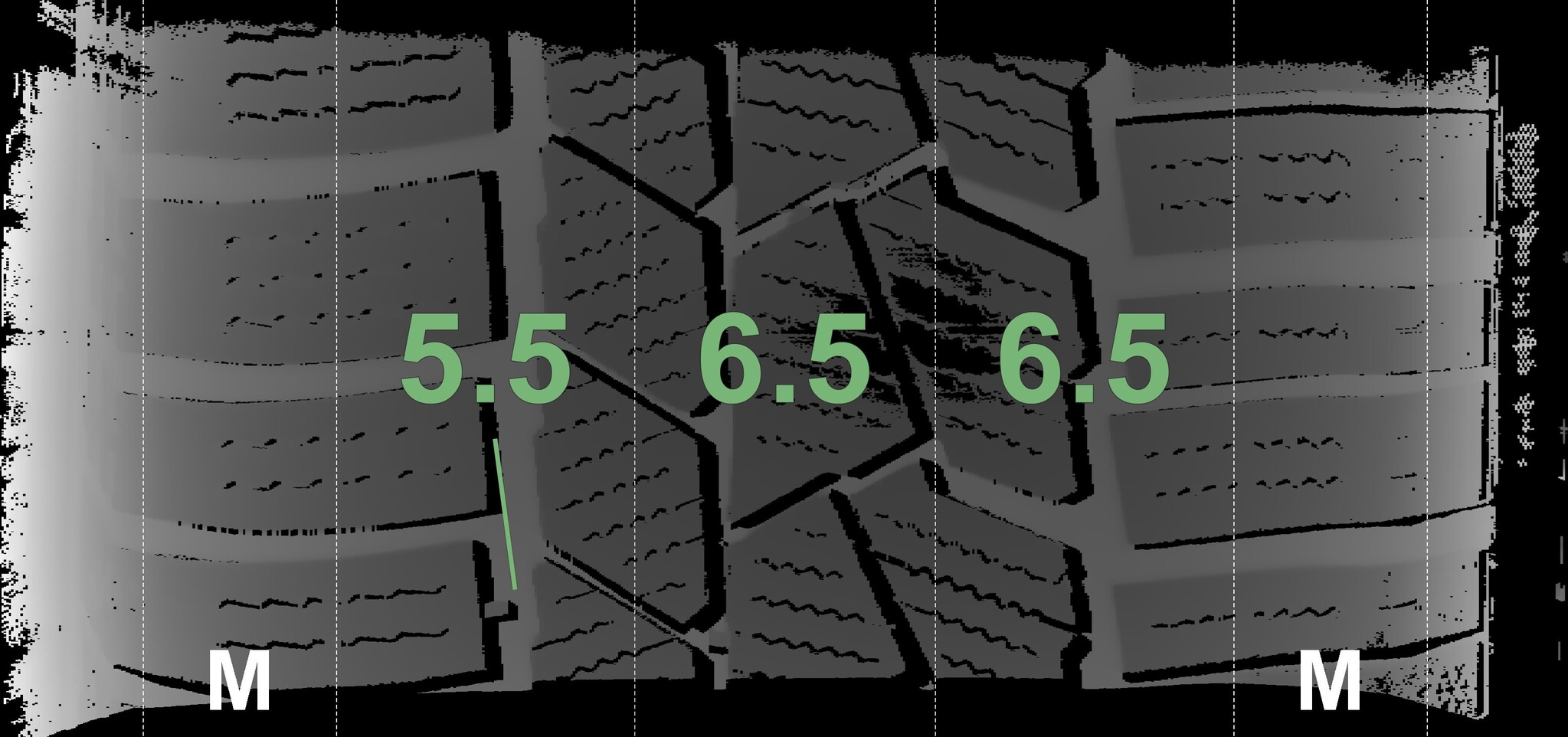 | Condition | Profile depth | DOT | Front Left | Used | 5.5 mm | 2219 |