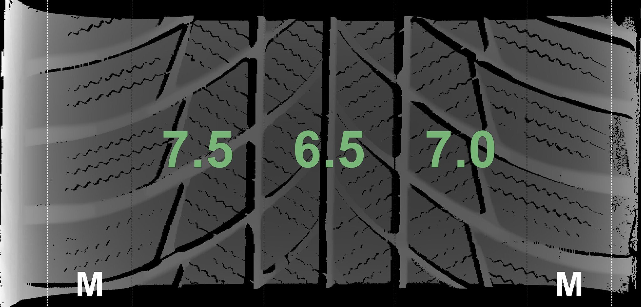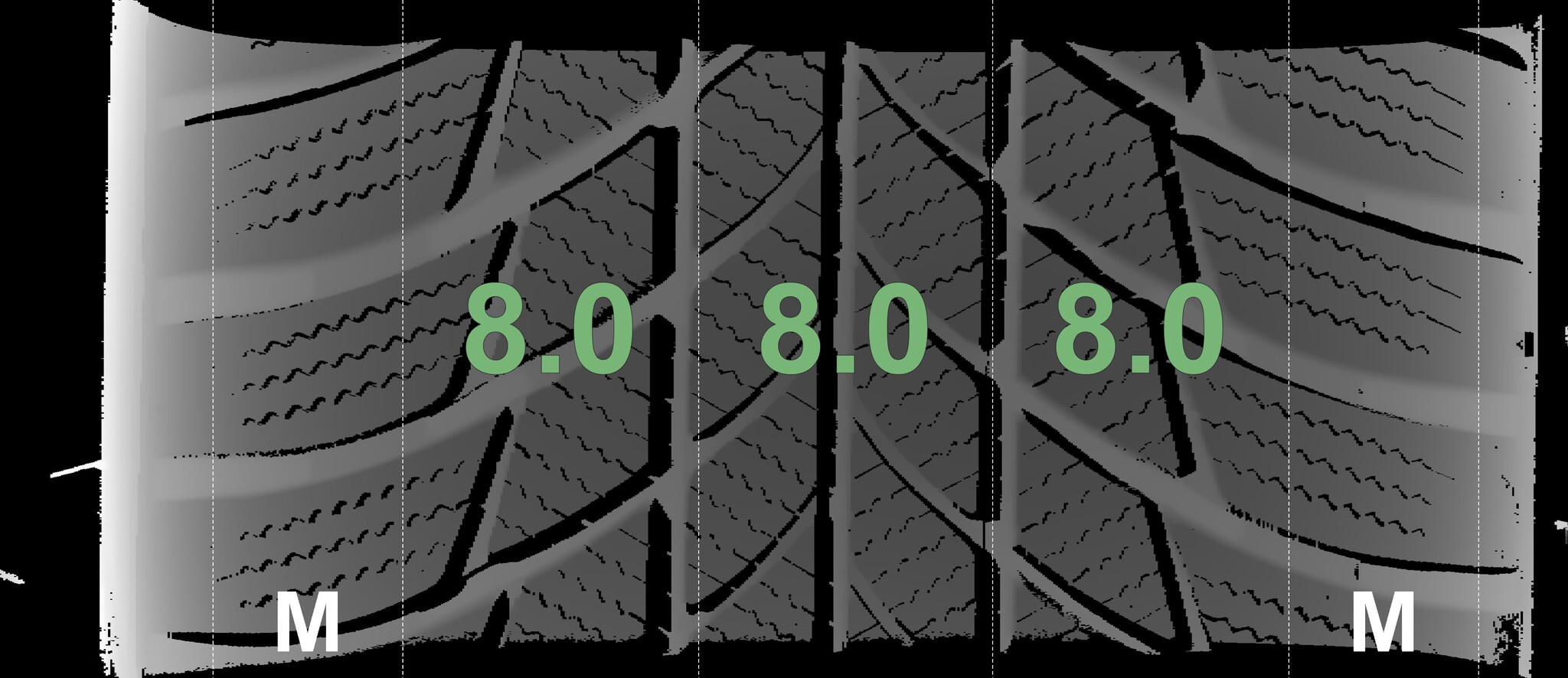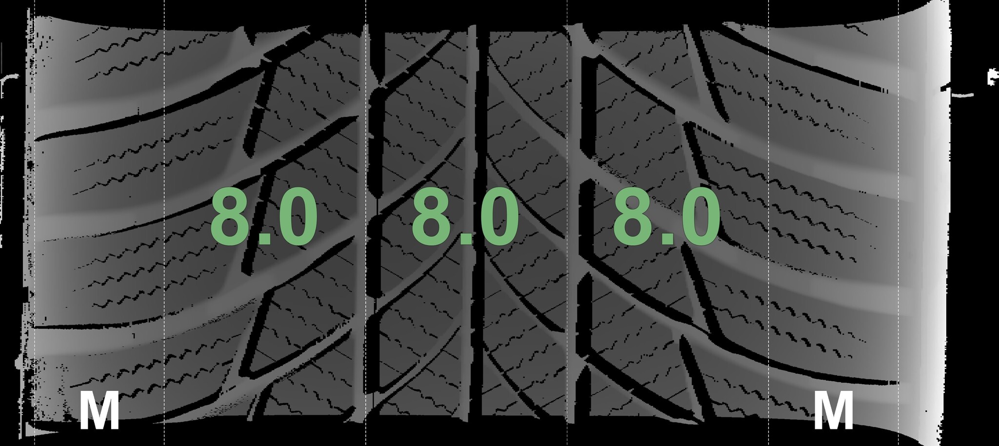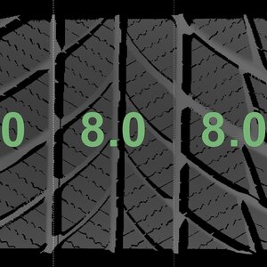 The measured tread depths and the details of the rims are shown above.