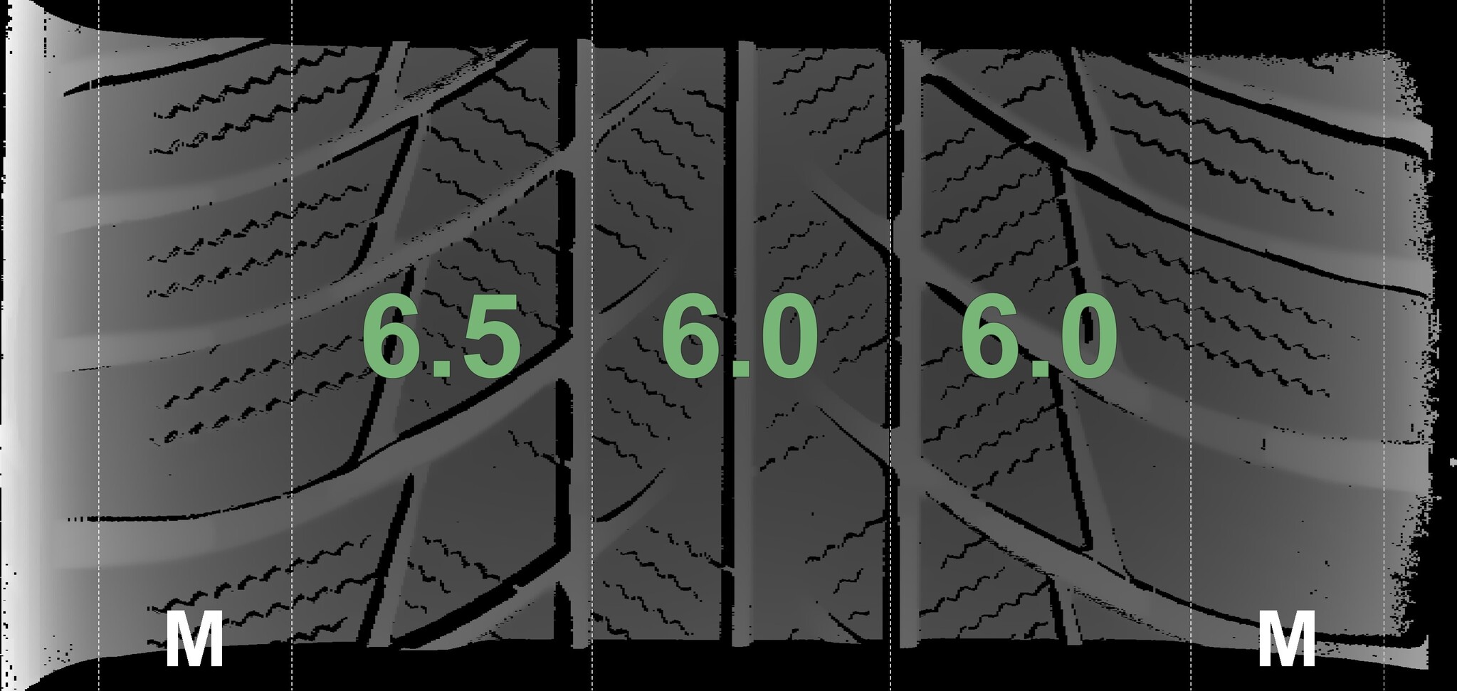 Condition | Profile depth | DOT | Front Left | Used | 6.0 mm | 3619 |