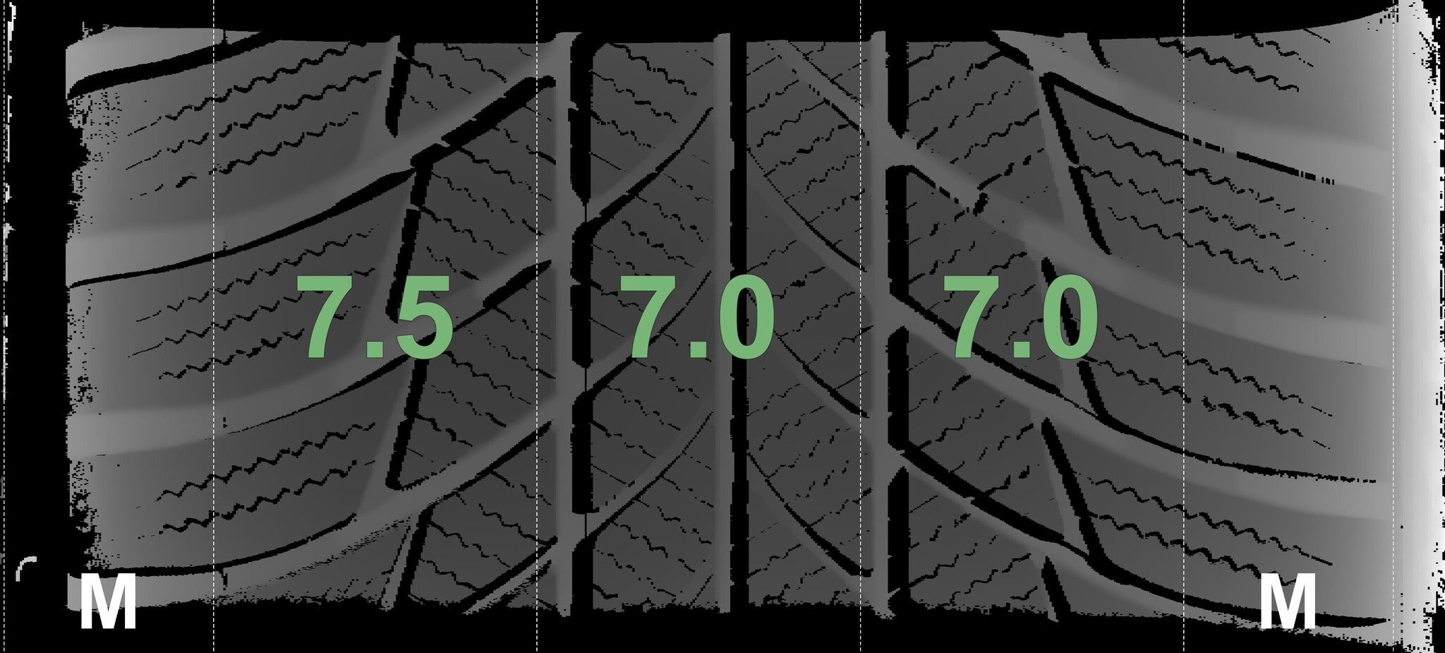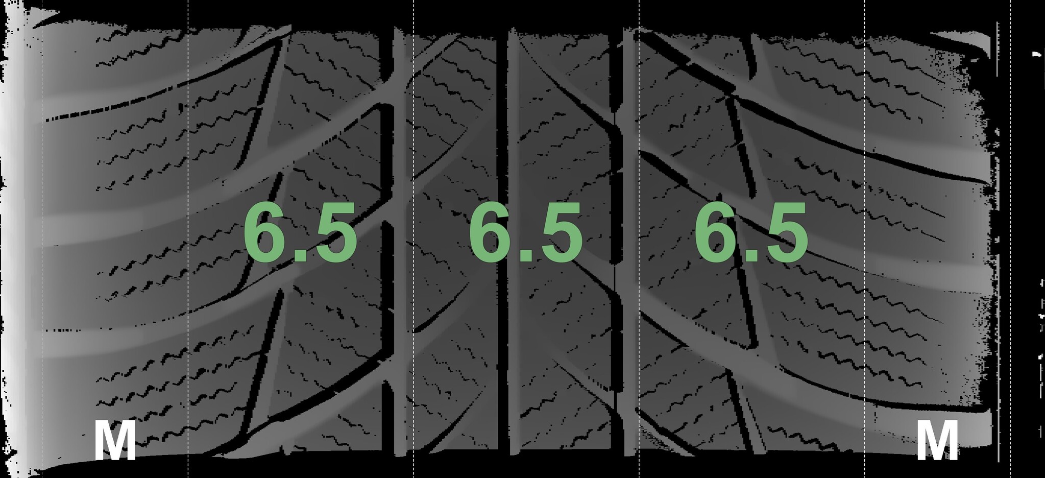 Condition | Profile depth | DOT | Front Right | Used | 6.5 mm | 3319 |