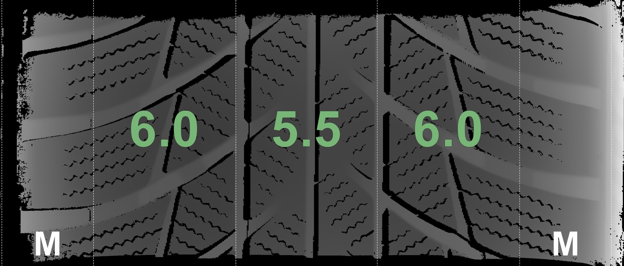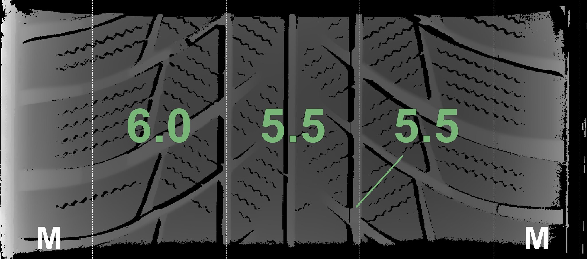 | Condition | Profile depth | DOT | Front Left | Used | 5.5 mm | 3619 |