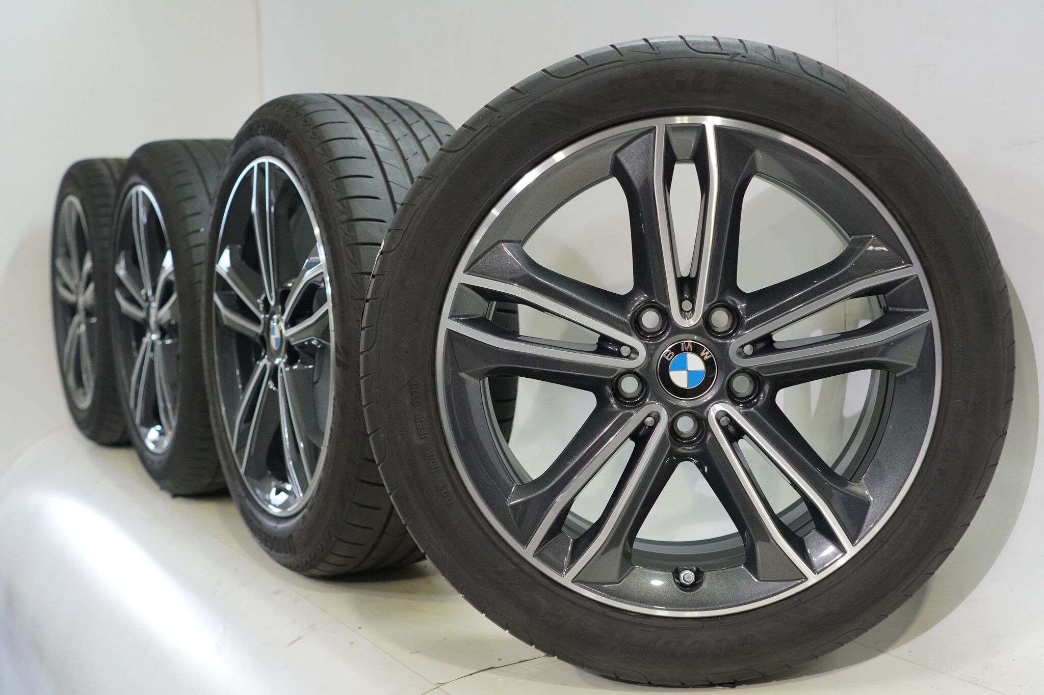 Original BMW wheelset, styling 549, 17-inch rims with Bridgestone TURANZA T005 summer tires. These rims are original BMW brand rims and suitable for: BMW 1 2 series F40 F44 2 series Gran Coupe.