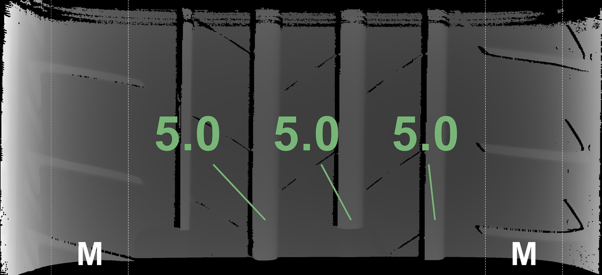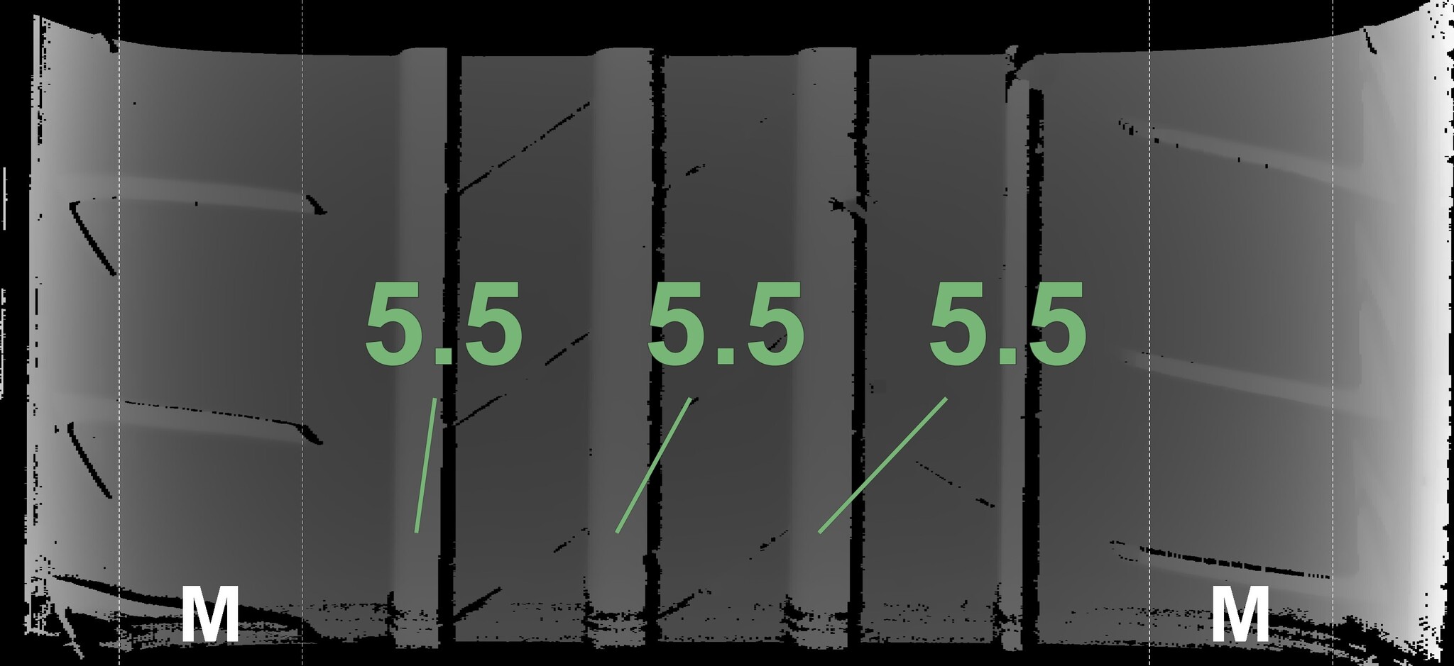 The measured tread depths and the details of the rims are shown above.