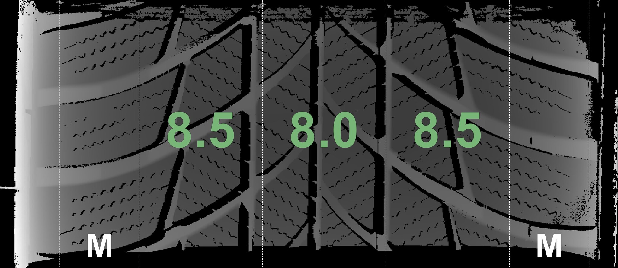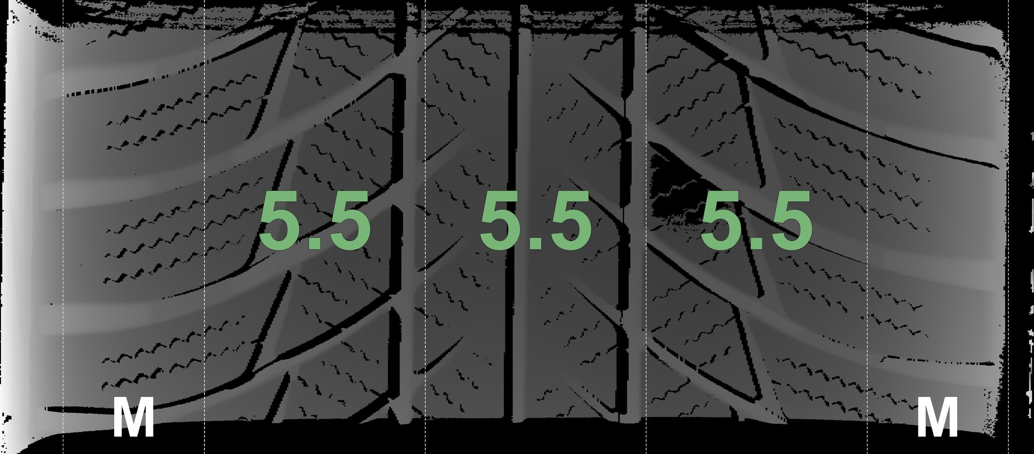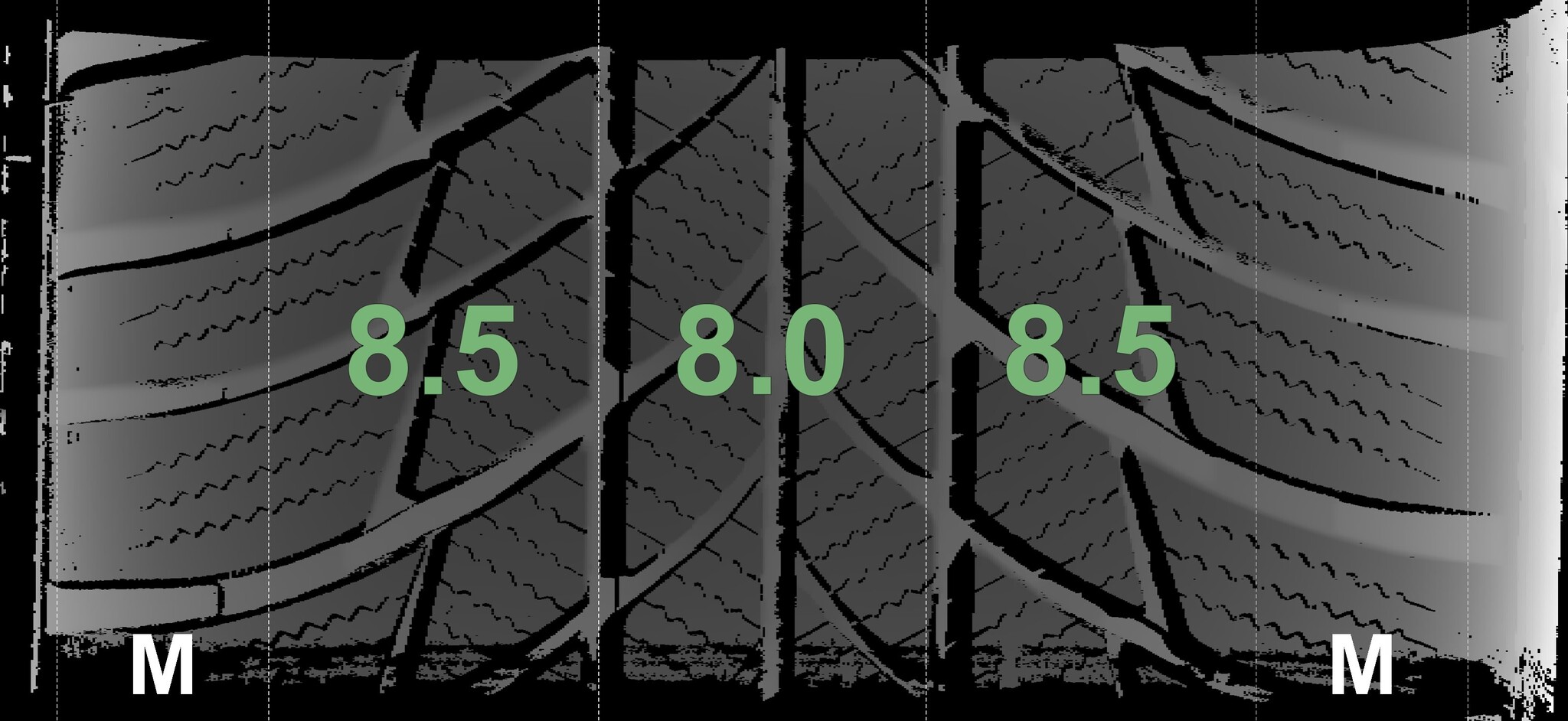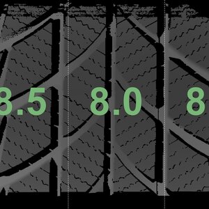 The measured tread depths and the details of the rims are shown above.