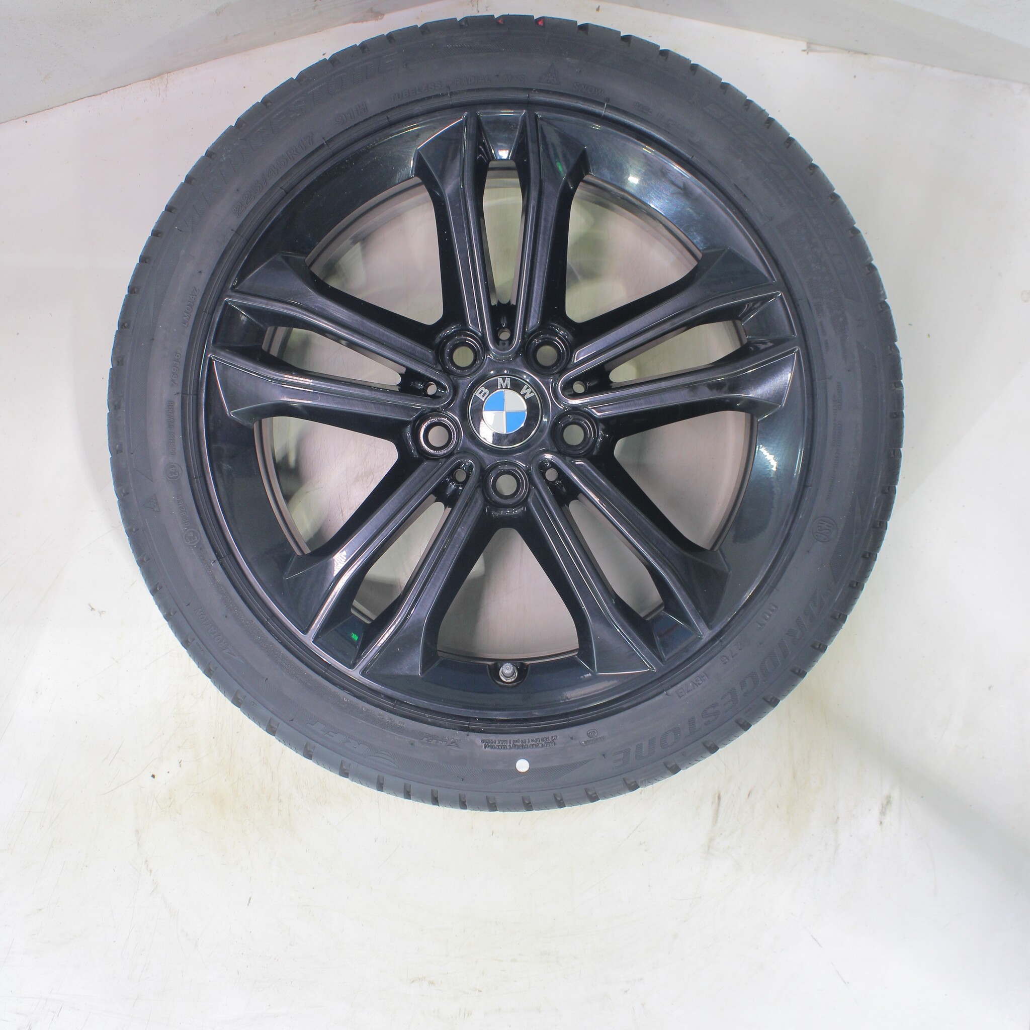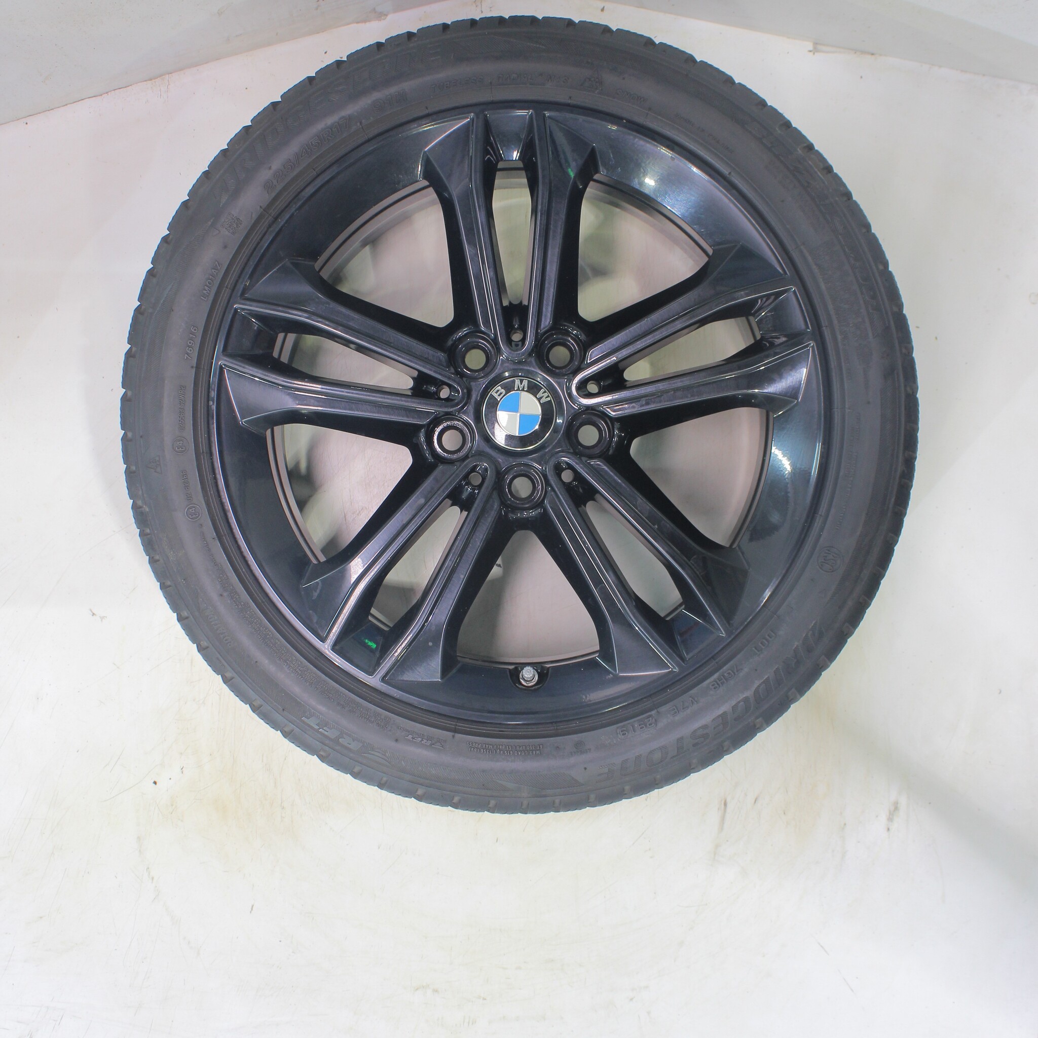 Original BMW wheelset, styling 549, 17-inch rims with Bridgestone BLIZZAK LM001 Runflat Winter Tires. These rims are original BMW brand rims and suitable for: BMW 1 2 series F40 F44 2 series Gran Coupe.