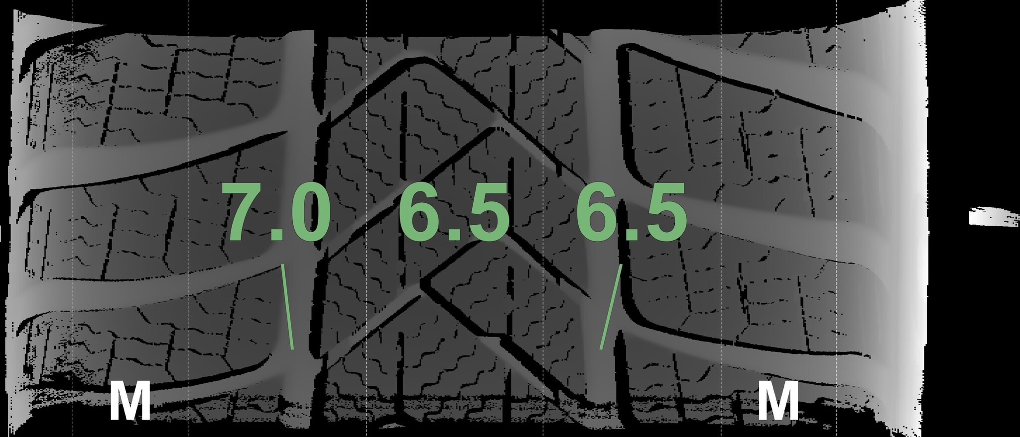 | Condition | Profile depth | DOT | Front Left | Used | 6.3 mm | 3619 |