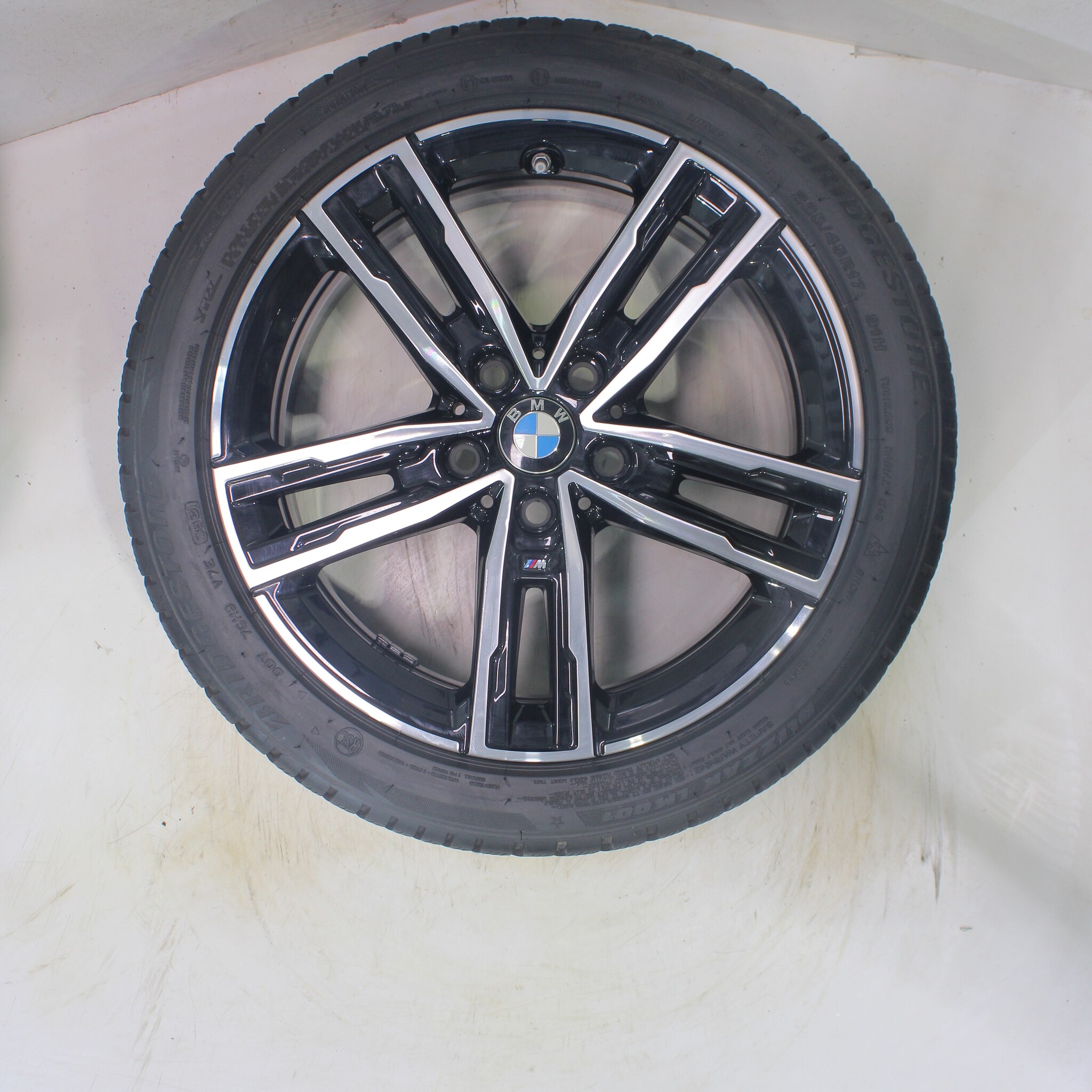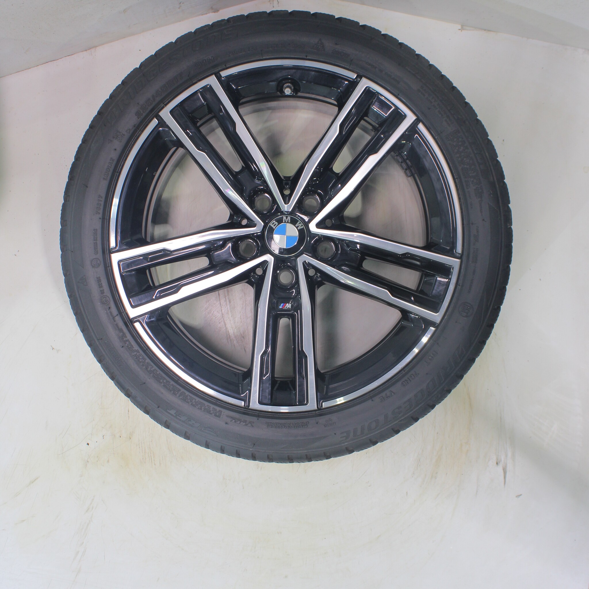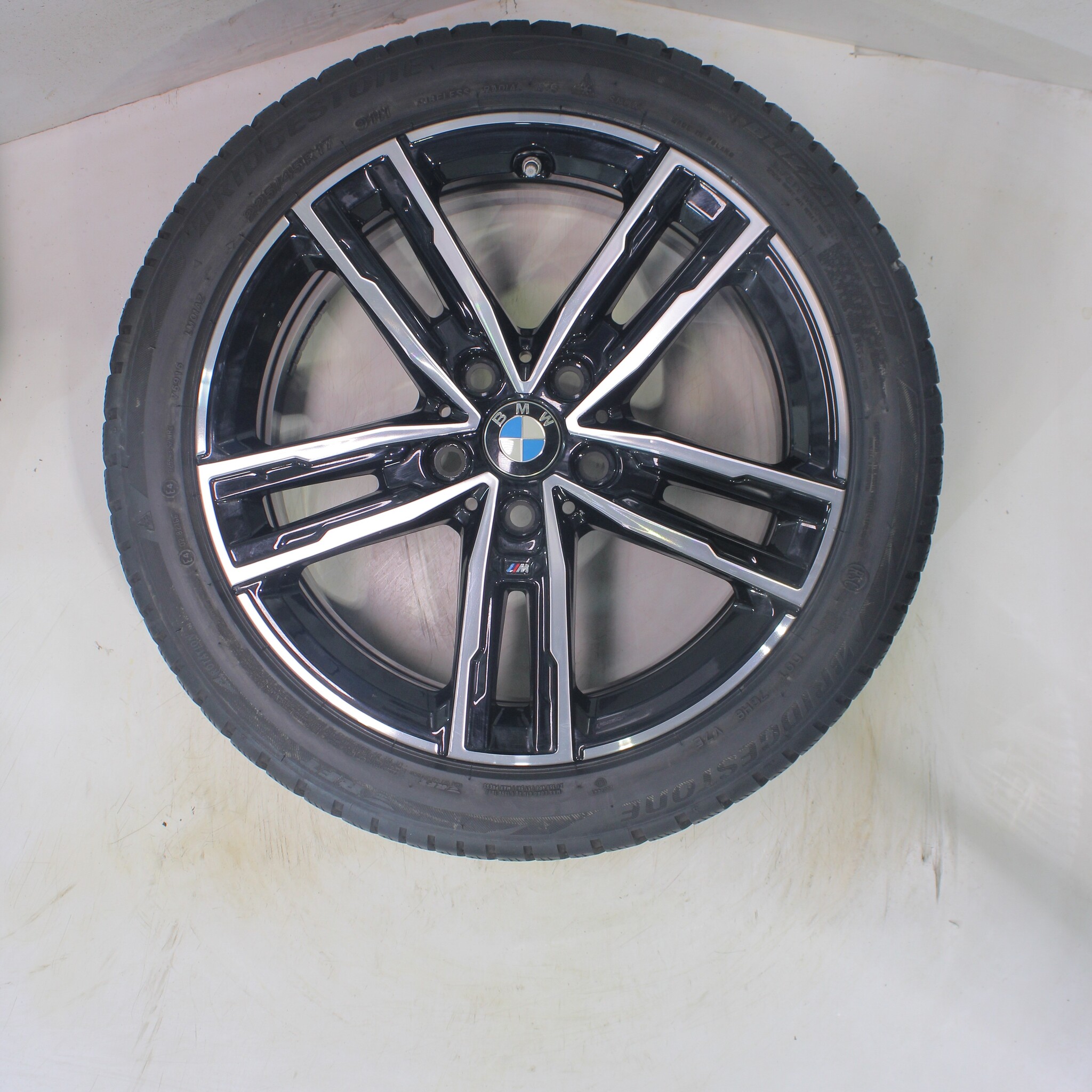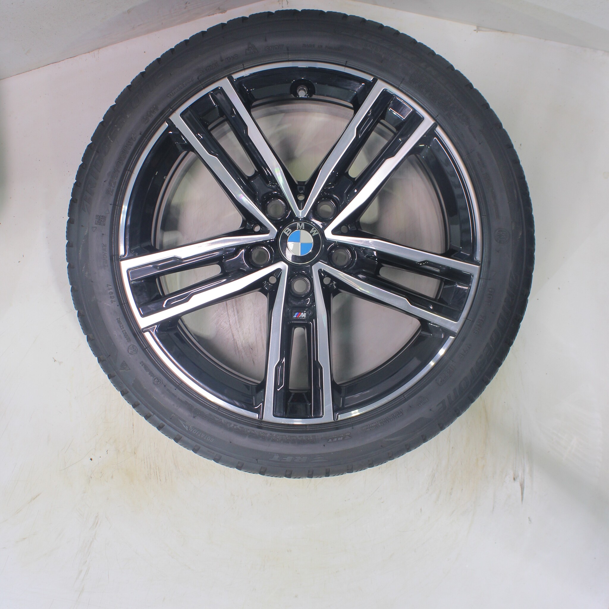 Original BMW wheel set, styling 550M, 17-inch rims with Bridgestone BLIZZAK LM001 Runflat Winter Tires. These rims are original BMW brand rims and suitable for: BMW 1 2 series F40 F44 2 series Gran Coupe.