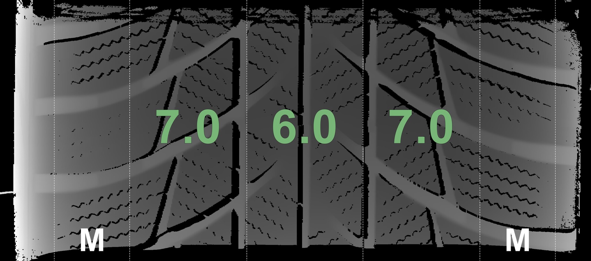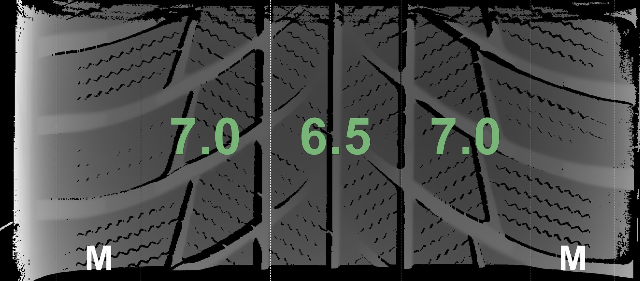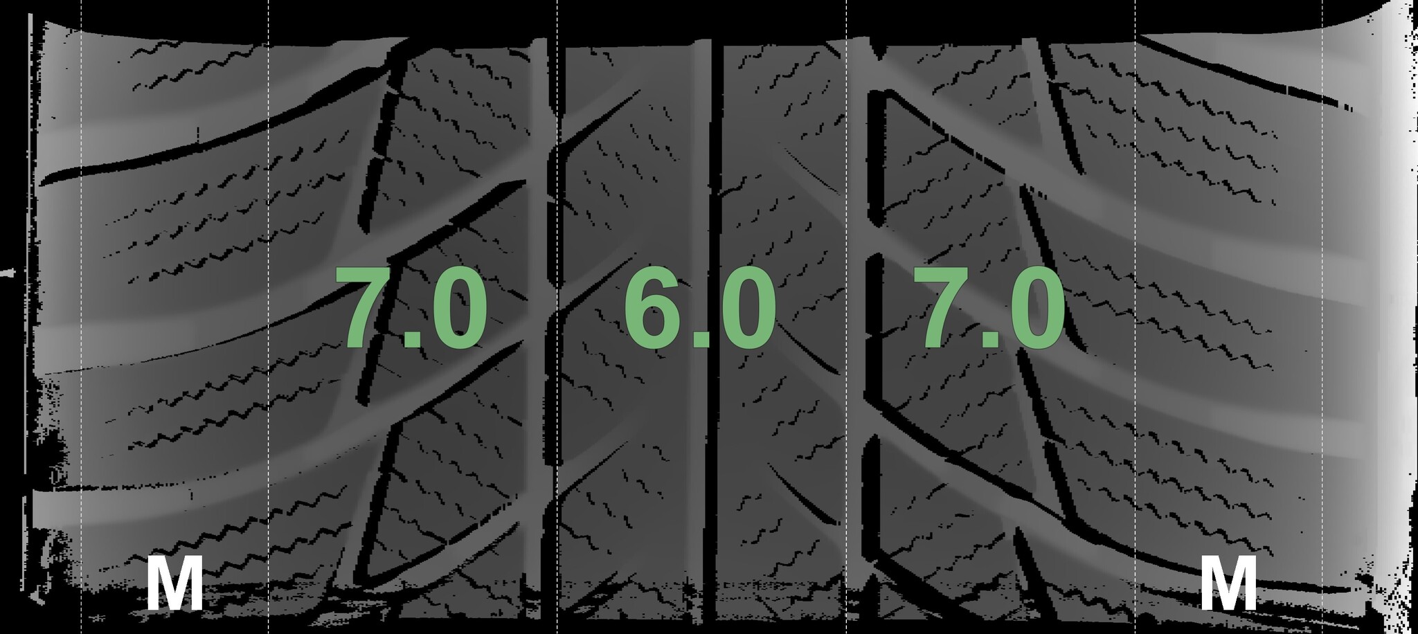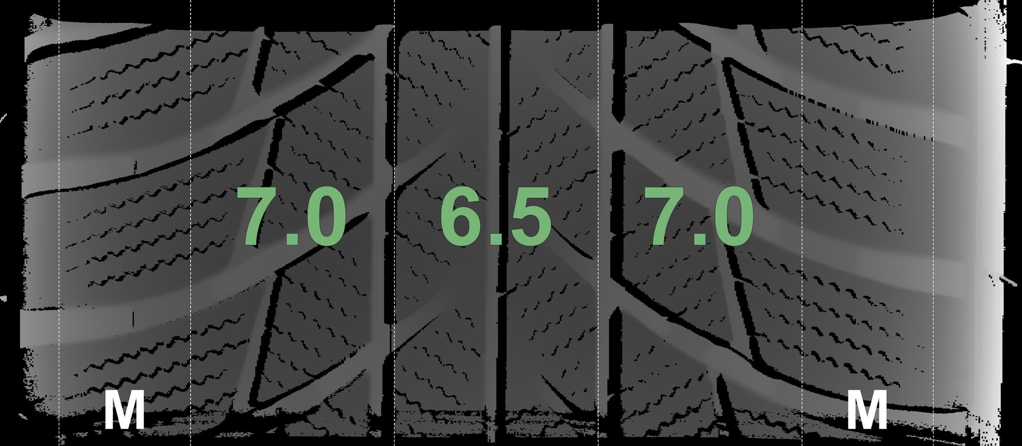 The measured tread depths and the details of the rims are shown above.