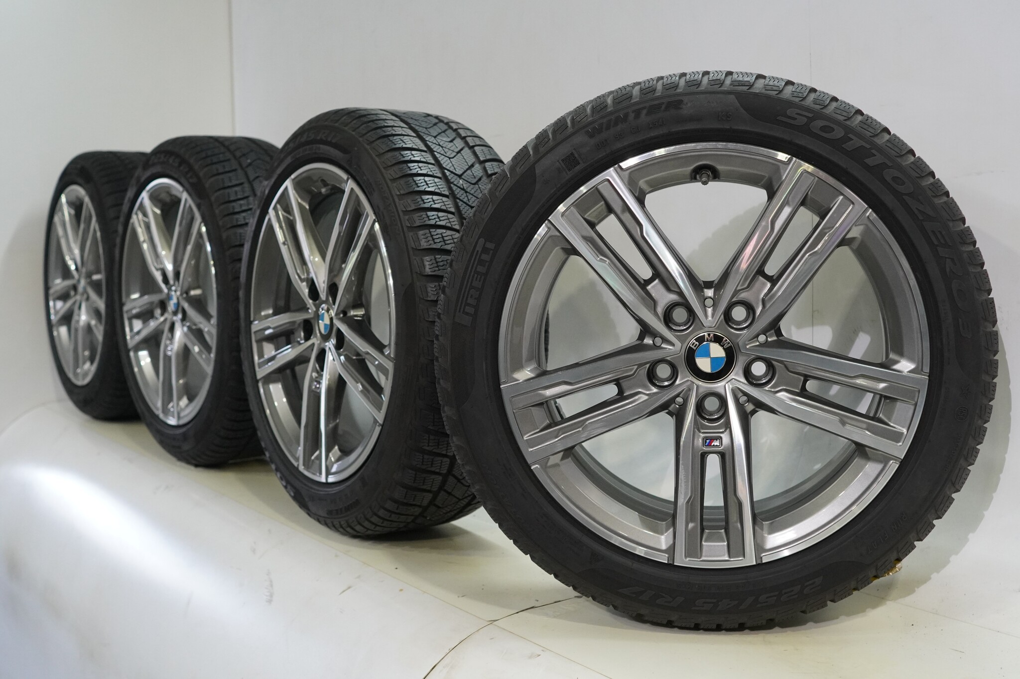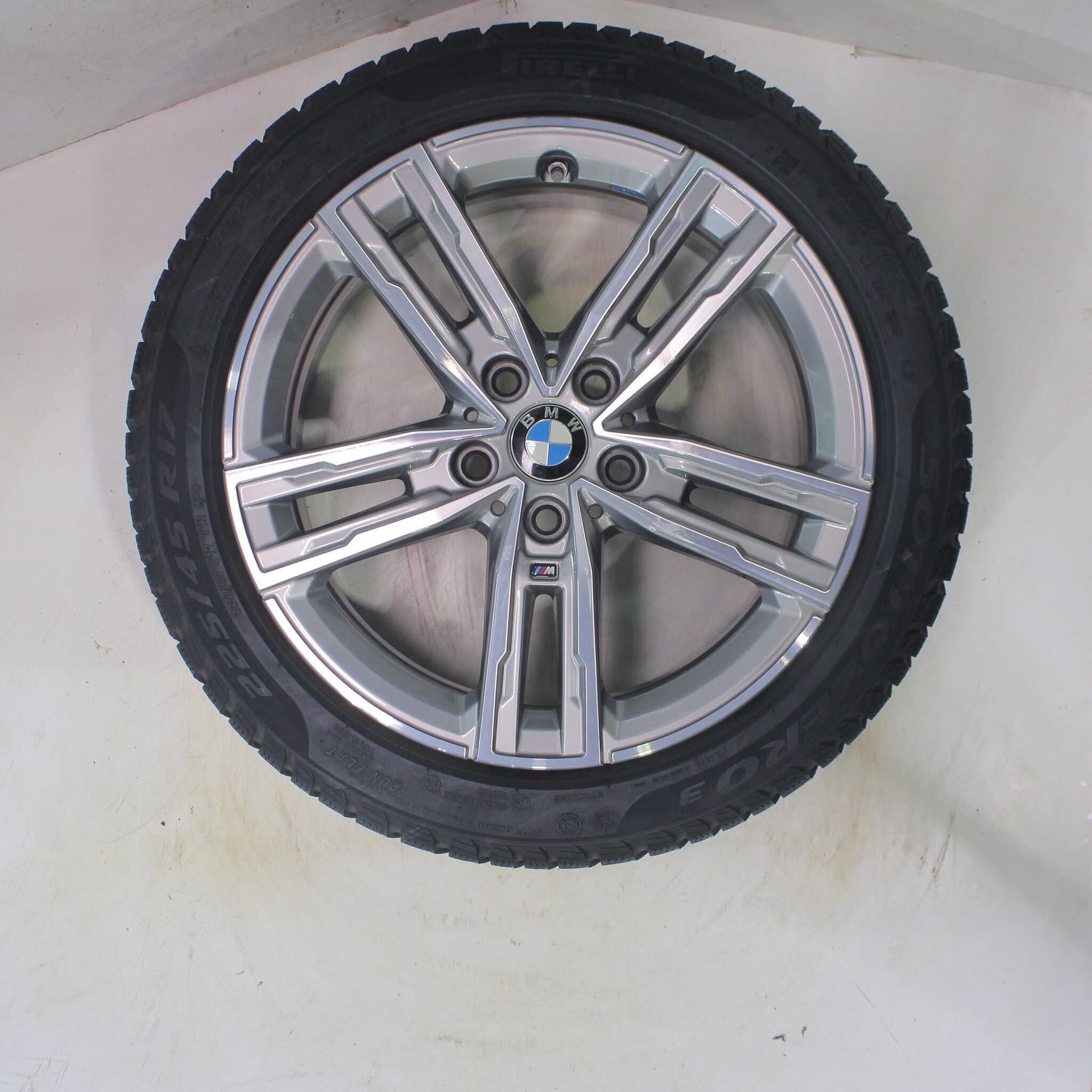Original BMW wheelset, styling 550M, 17-inch rims with Pirelli Winter Sottozero 3 Runflat Winter tires. These rims are original BMW brand rims and suitable for: BMW 1 2 series F40 F44 2 series Gran Coupe.