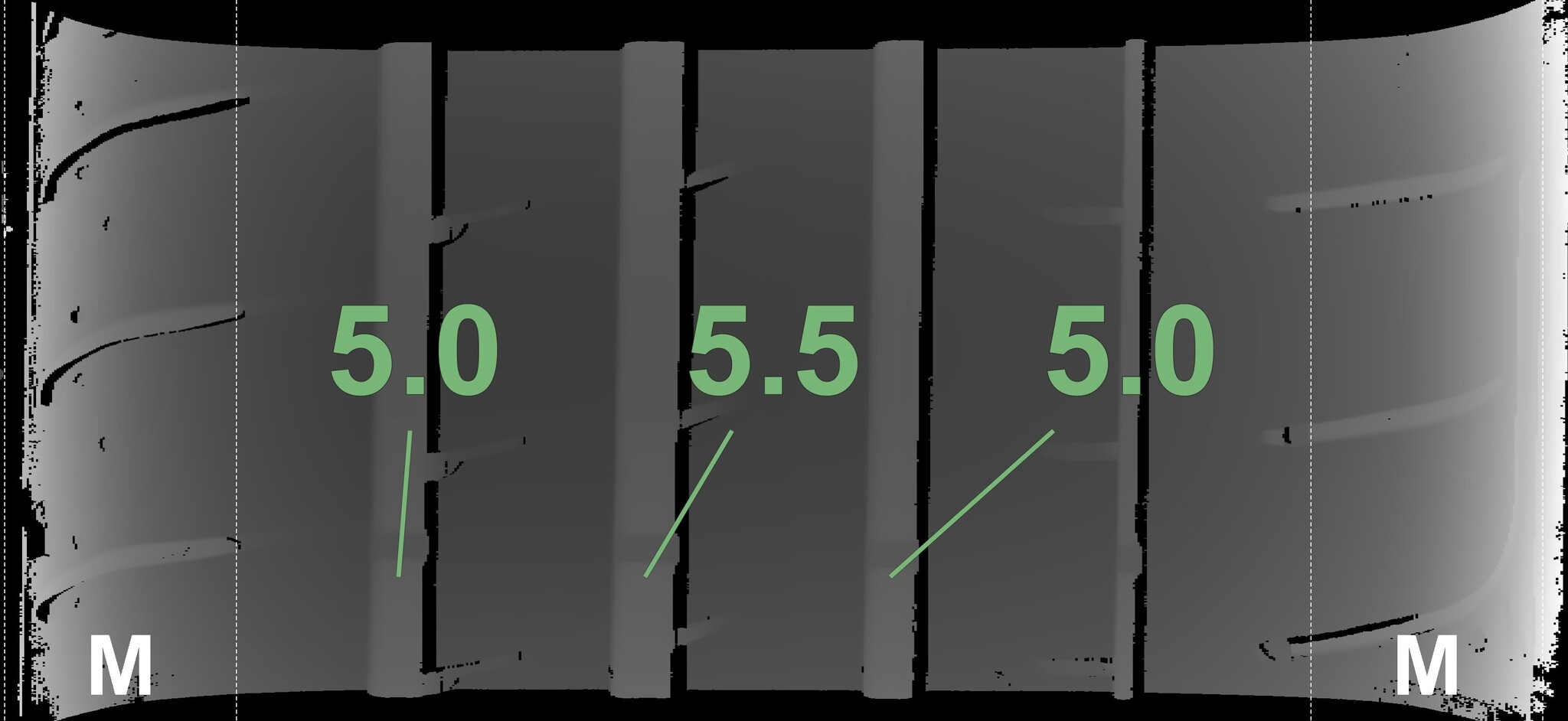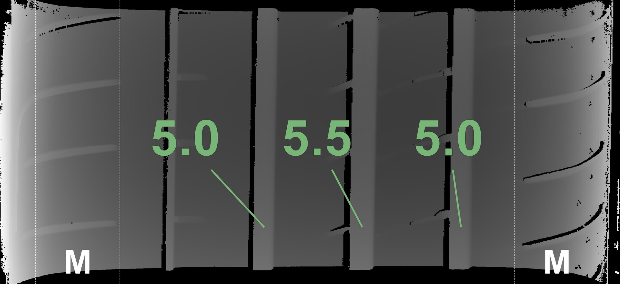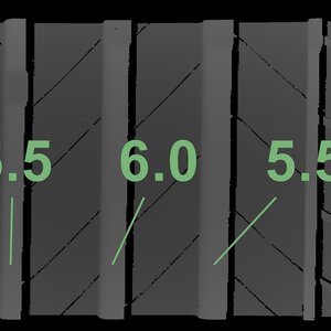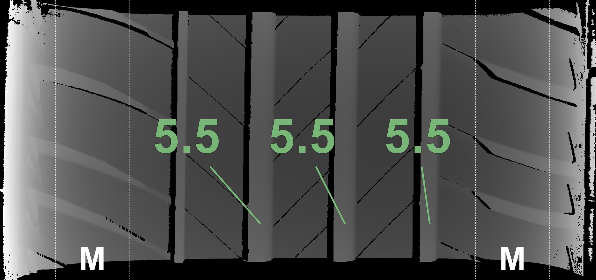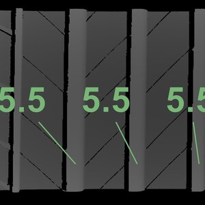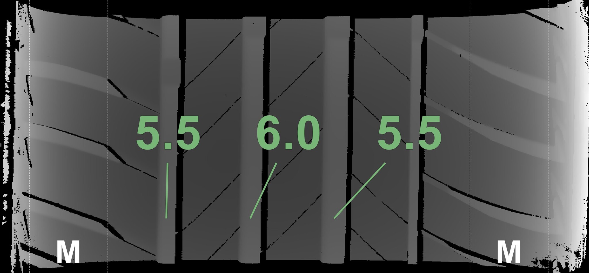The measured tread depths and the details of the rims are shown above.