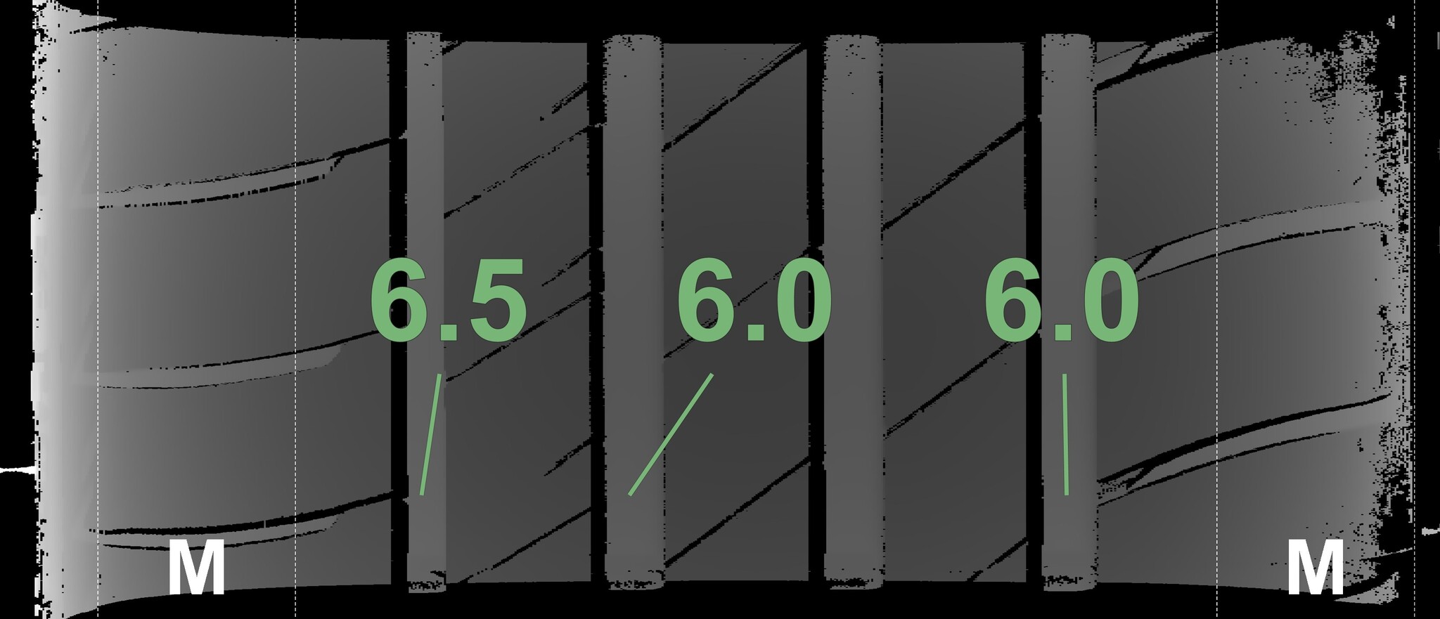 | Condition | Profile depth | DOT | Front Left | New | 6.0 mm | 4424 |