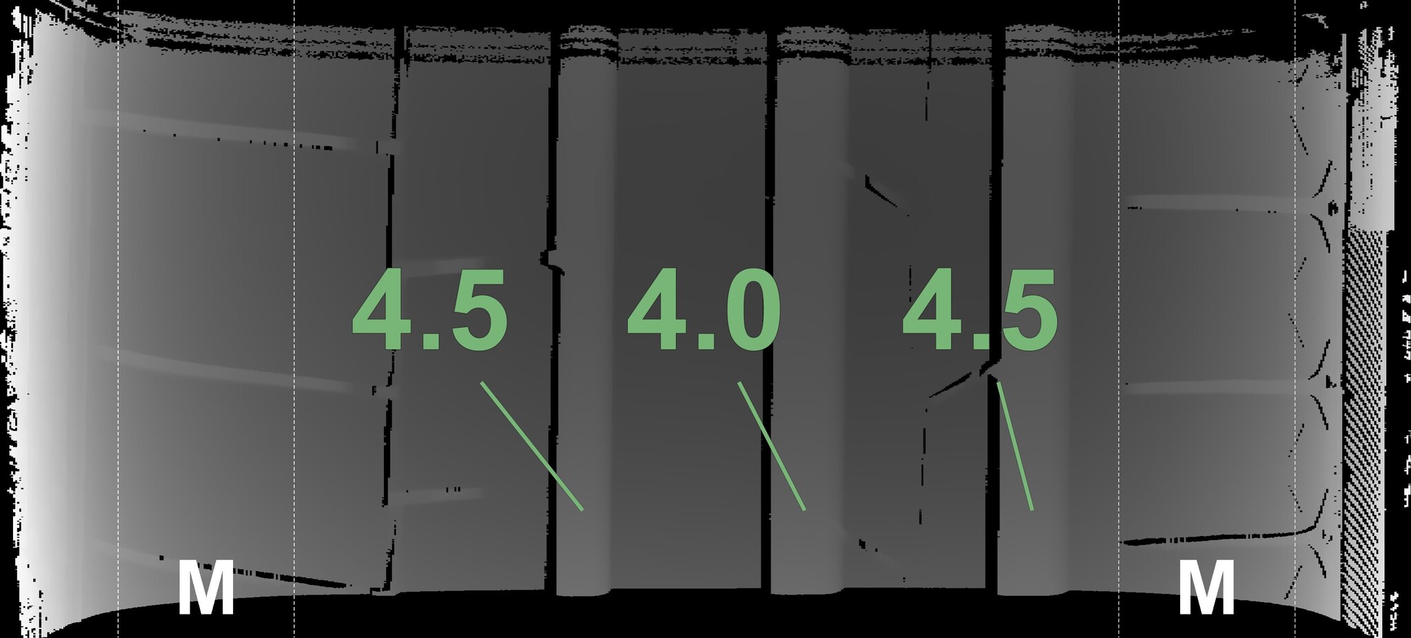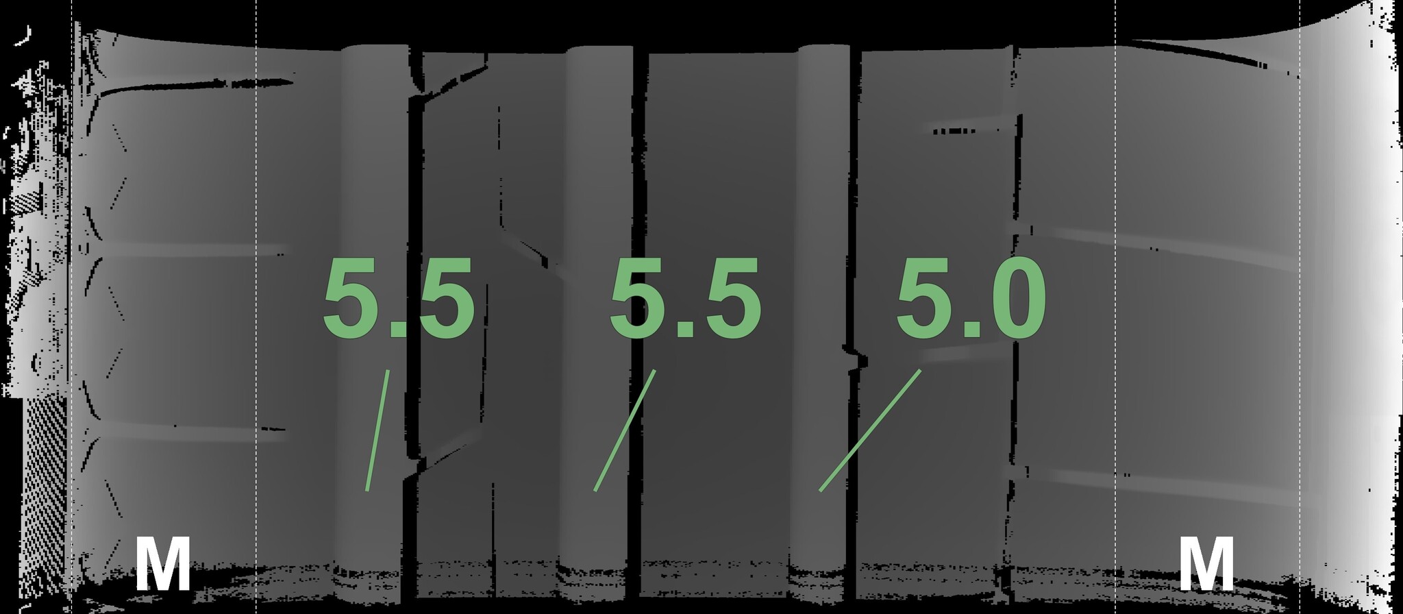 The measured tread depths and the details of the rims are shown above.