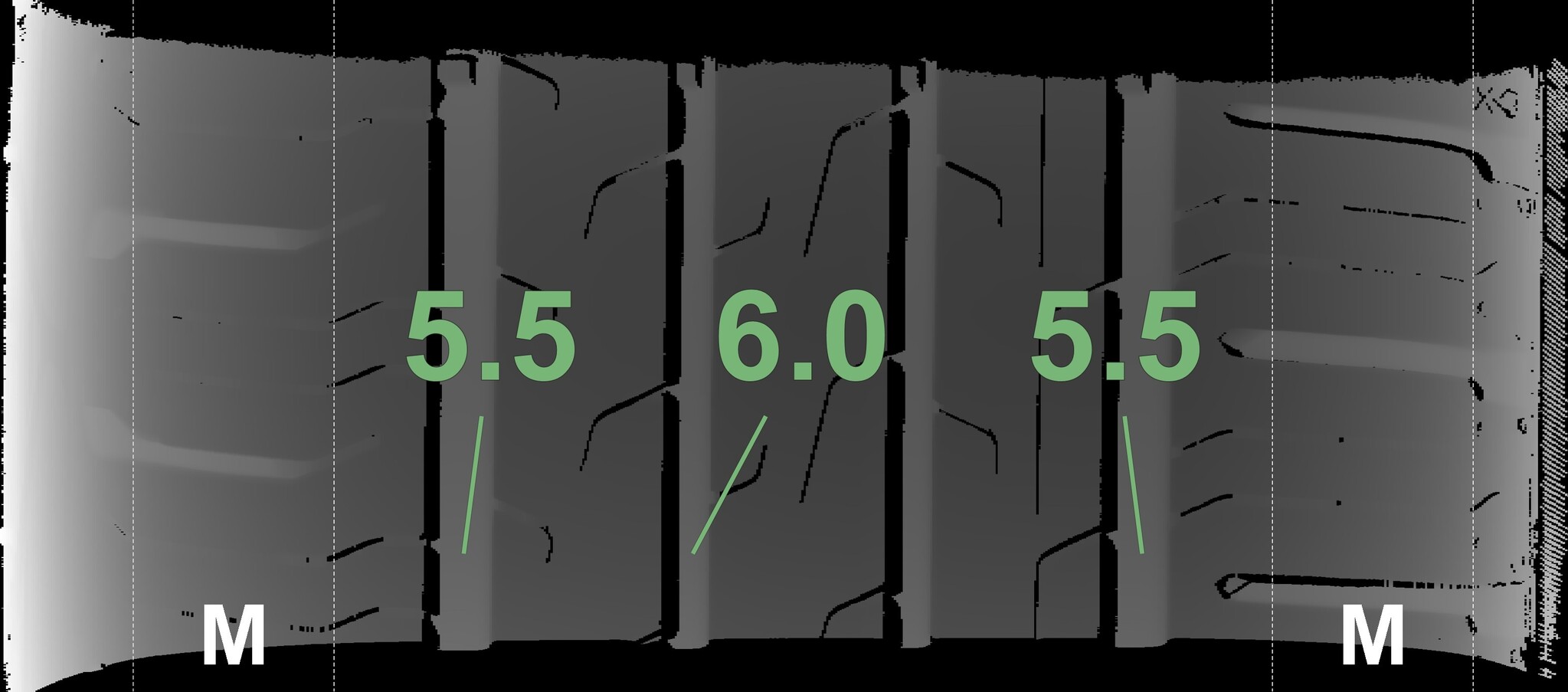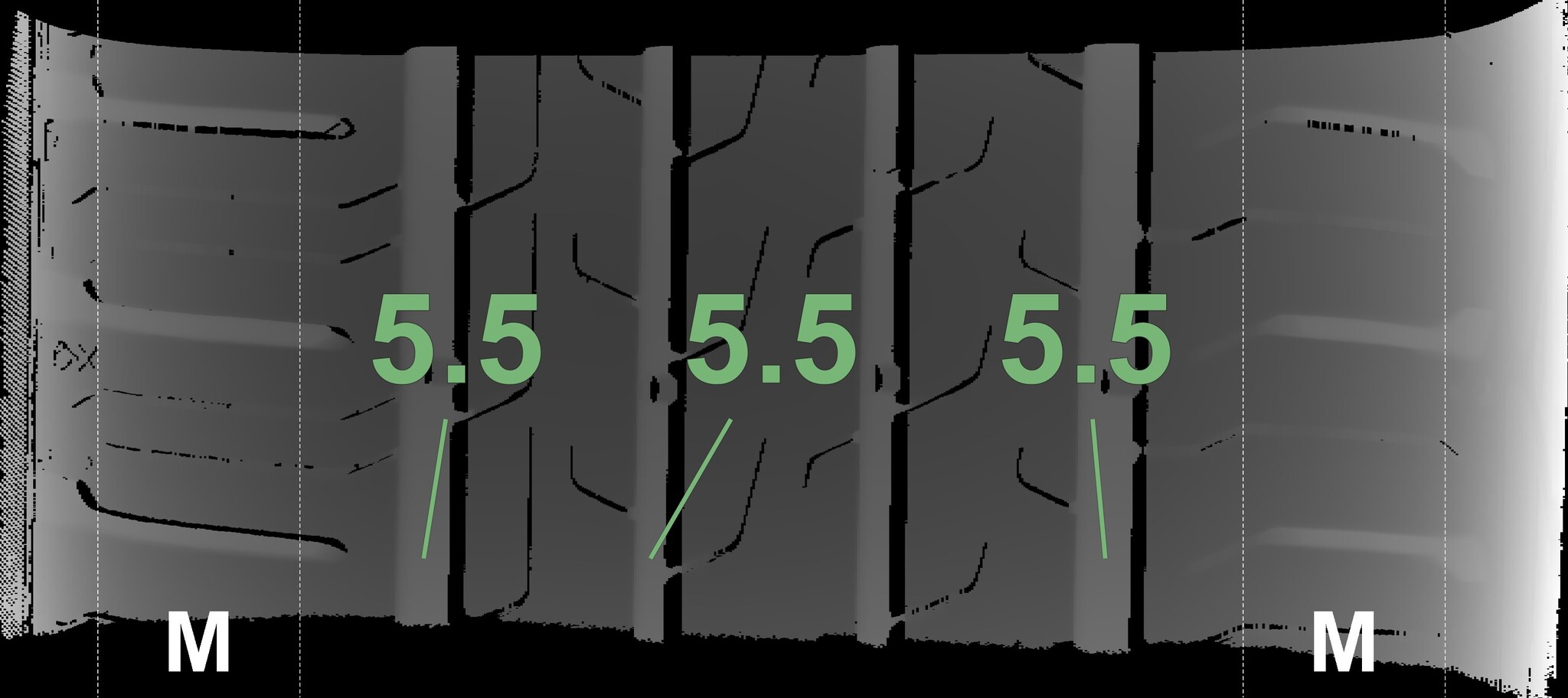 | Condition | Profile depth | DOT | Front Left | Used | 5.5 mm | 4022 |