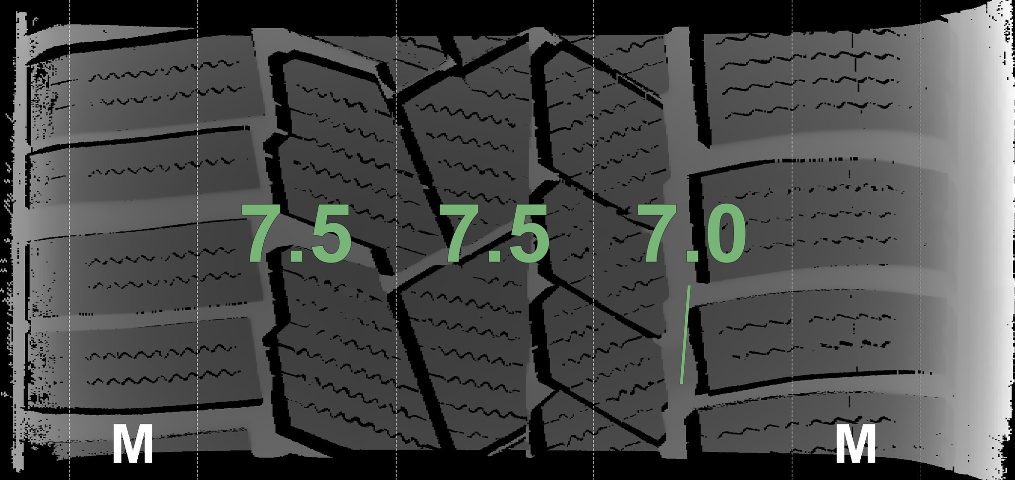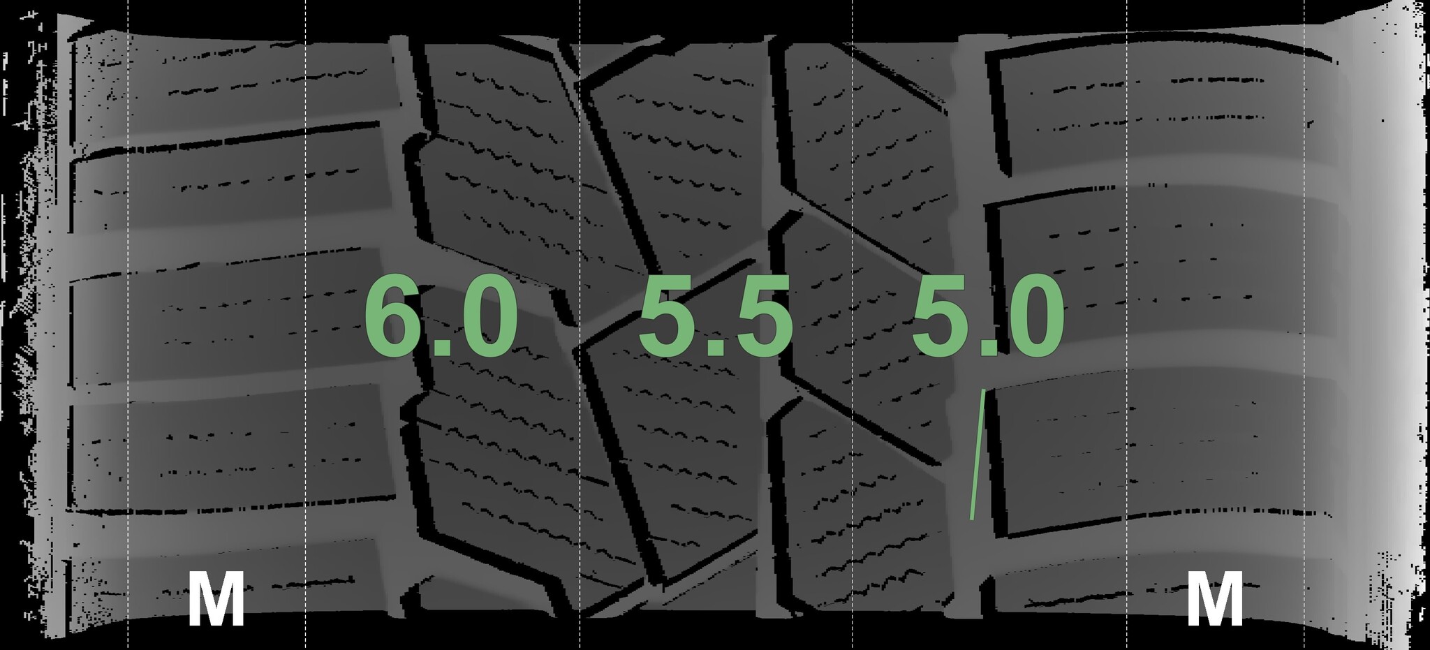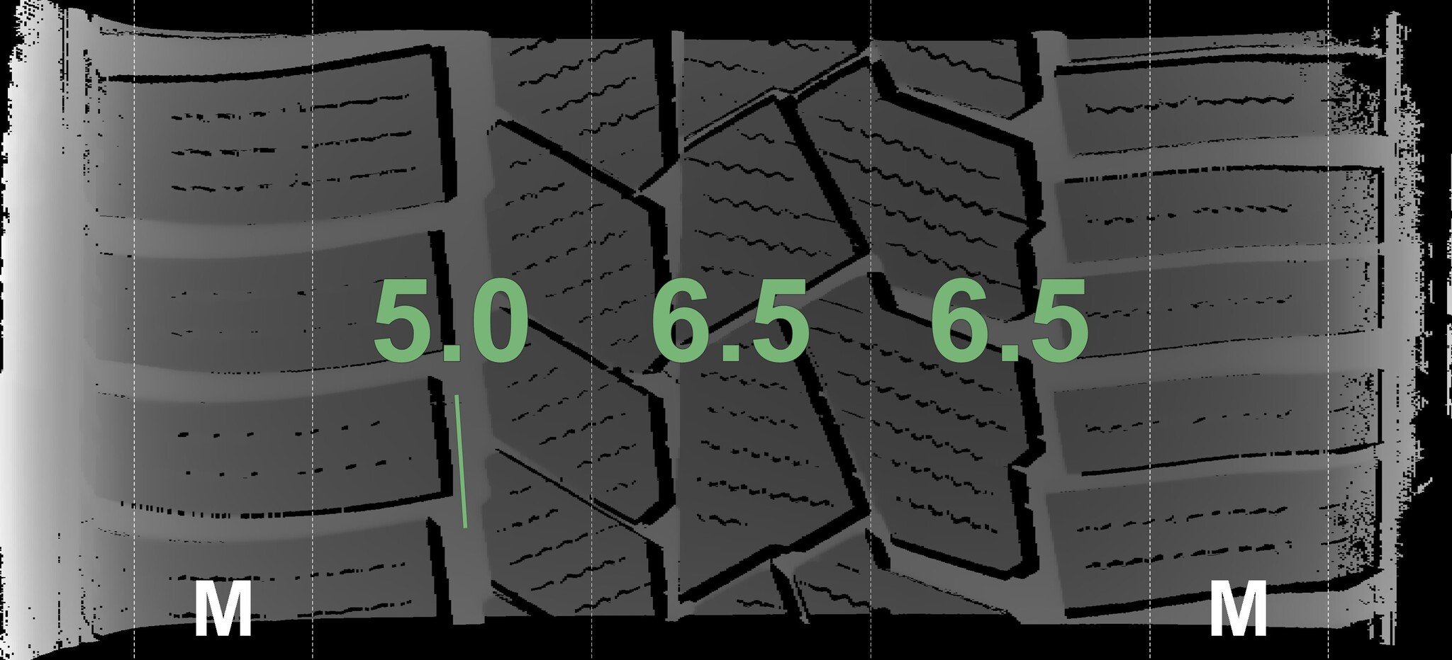 Condition | Profile depth | DOT | Front Right | Used | 5.0 mm | 3820 |