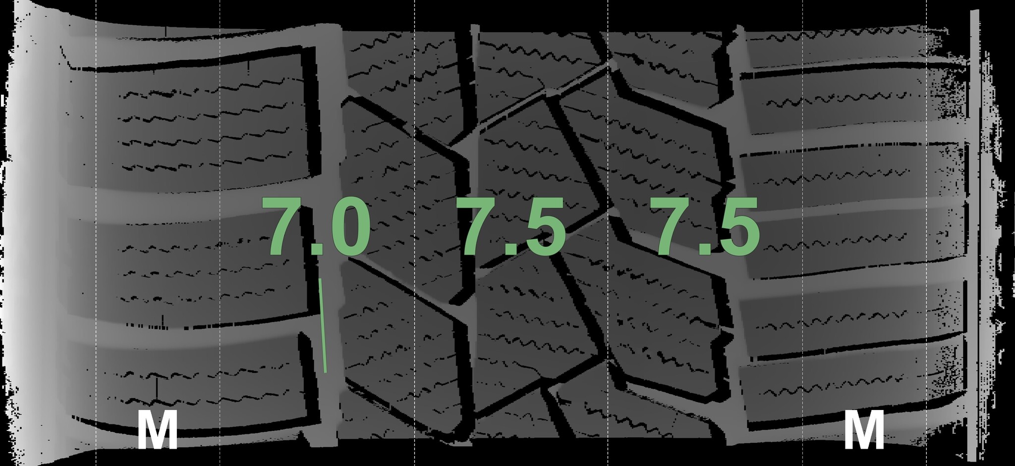 Condition | Profile depth | DOT | Rear Left | Used | 7.0 mm | 3820 |