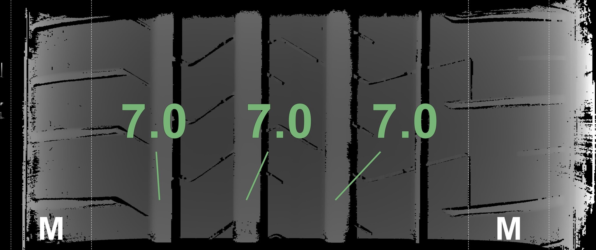 Condition | Profile depth | DOT | Front Right | New | 7.0 mm | 0323 |