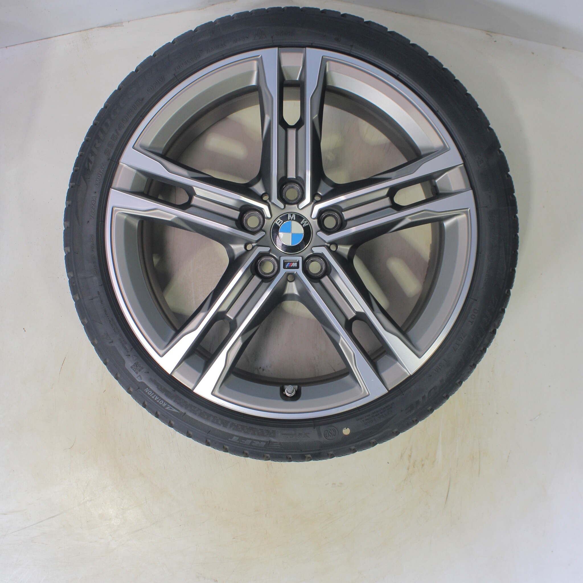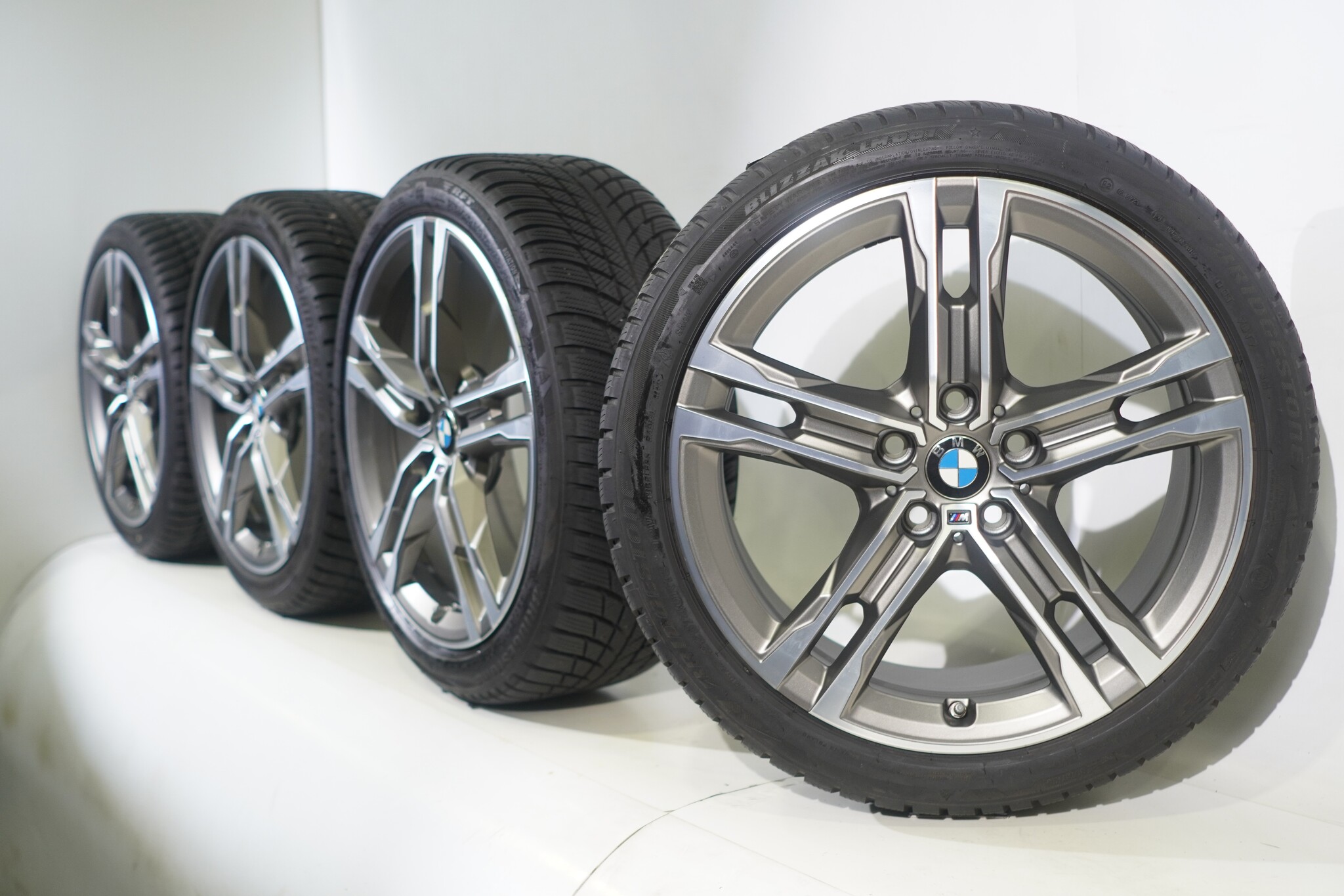 Original wheel set from BMW, styling 556M 18 inch rims with Bridgestone BLIZZAK LM001 Runflat Winter tires. These rims are original rims of the brand BMW and suitable for: BMW 1 2 series F40 F44 2 series Gran Coupe.