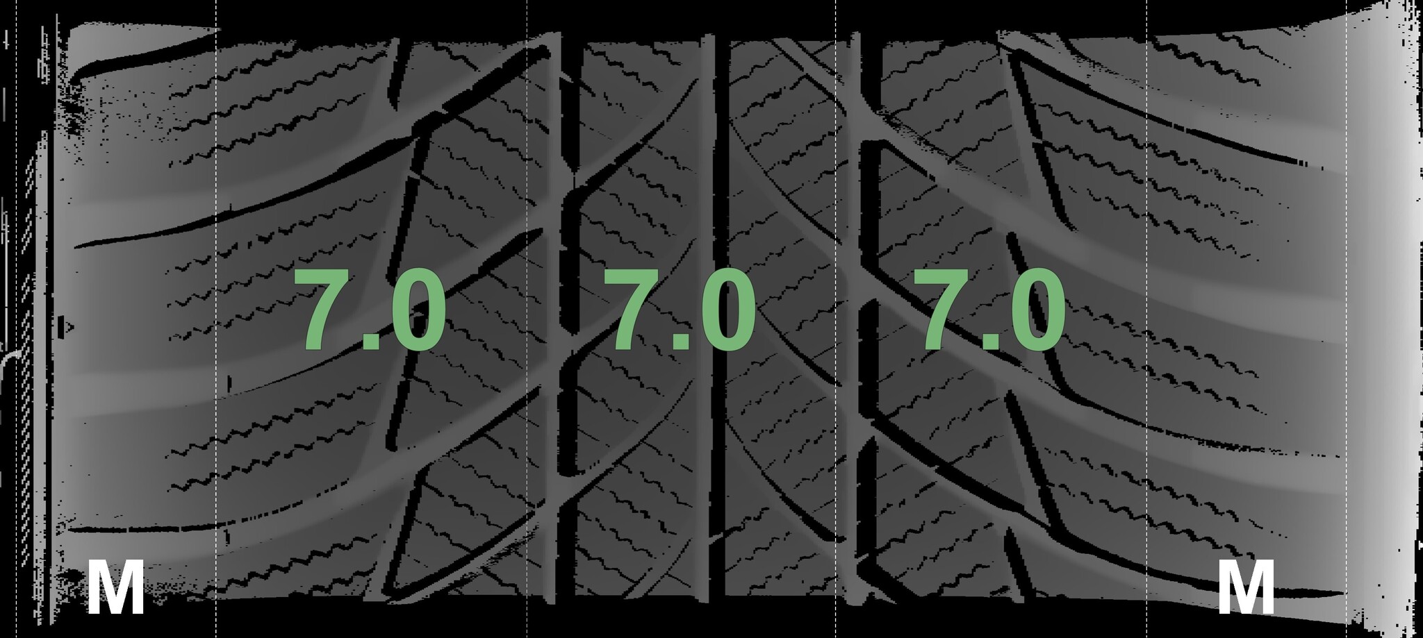 The measured tread depths and details of the rims are shown above.