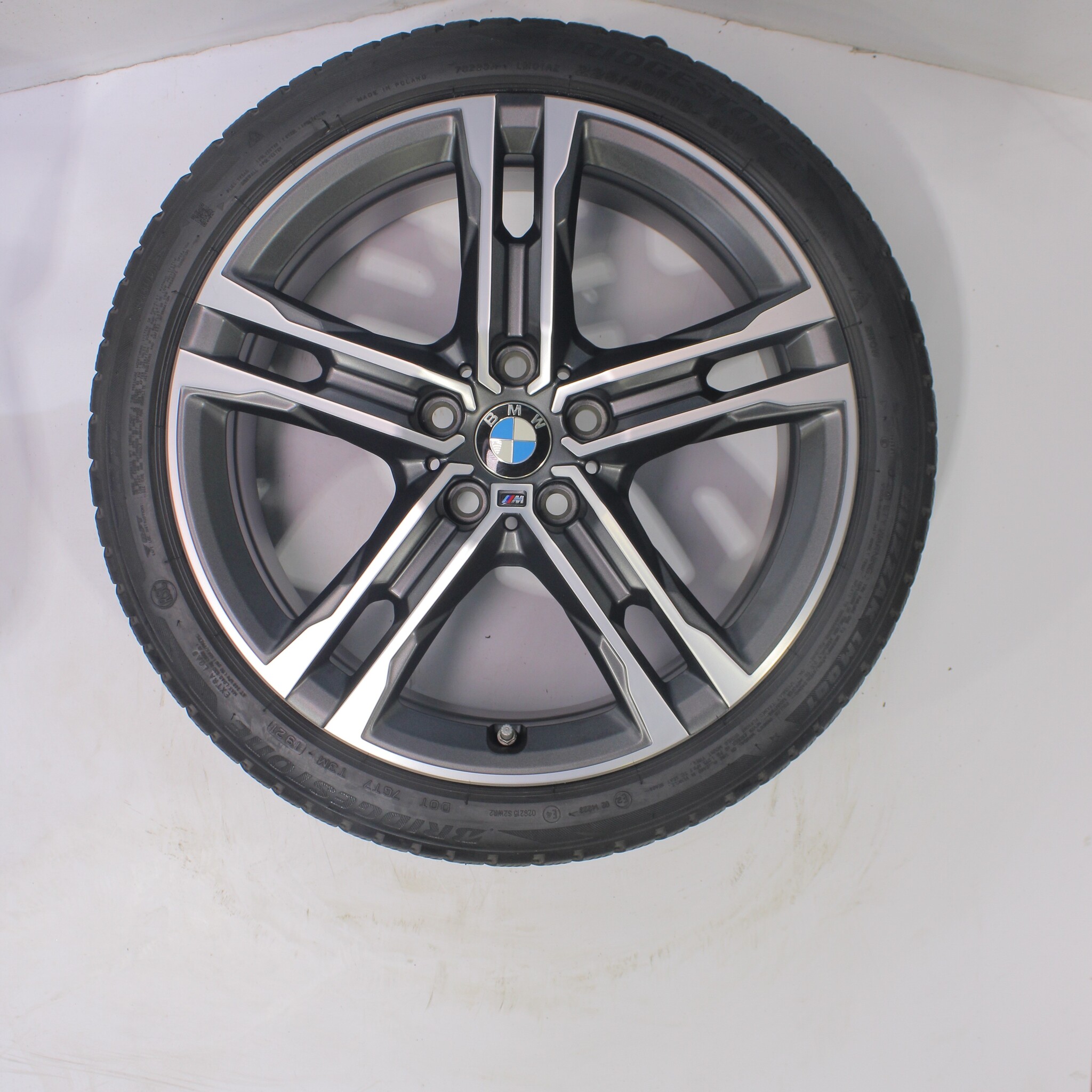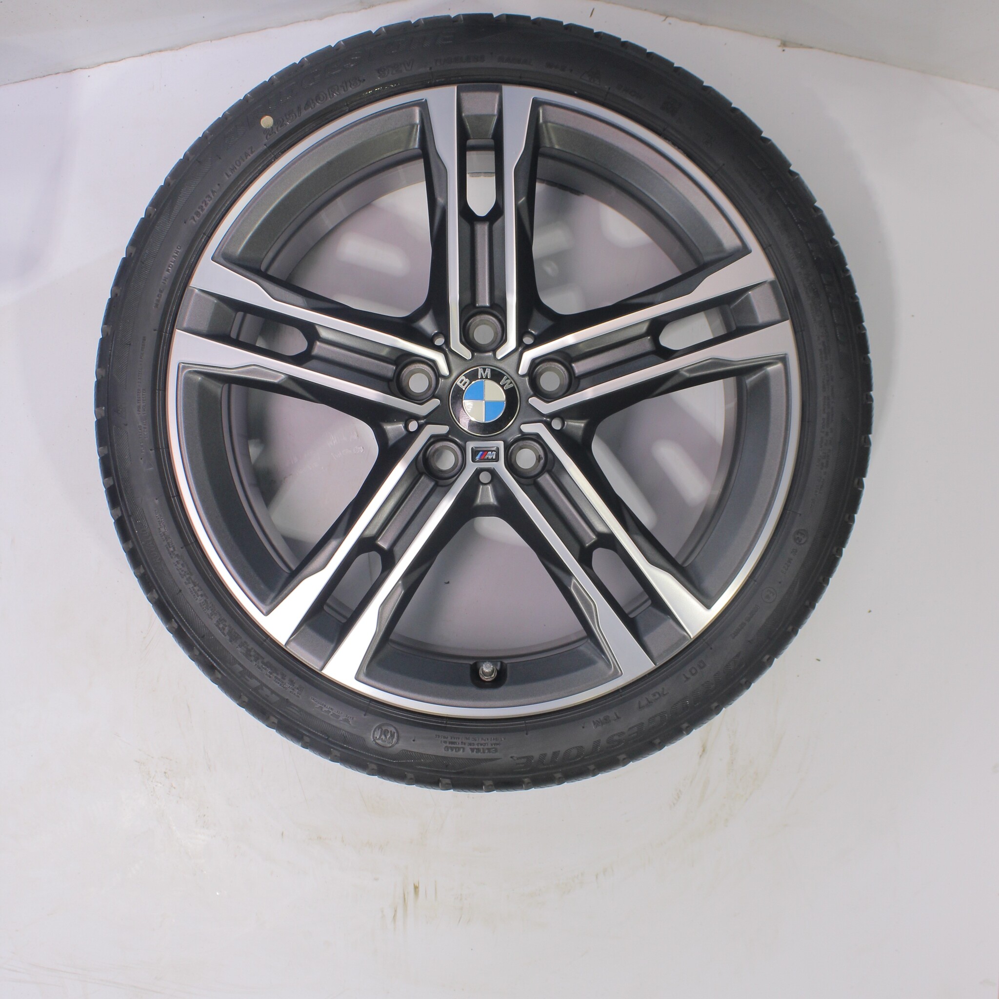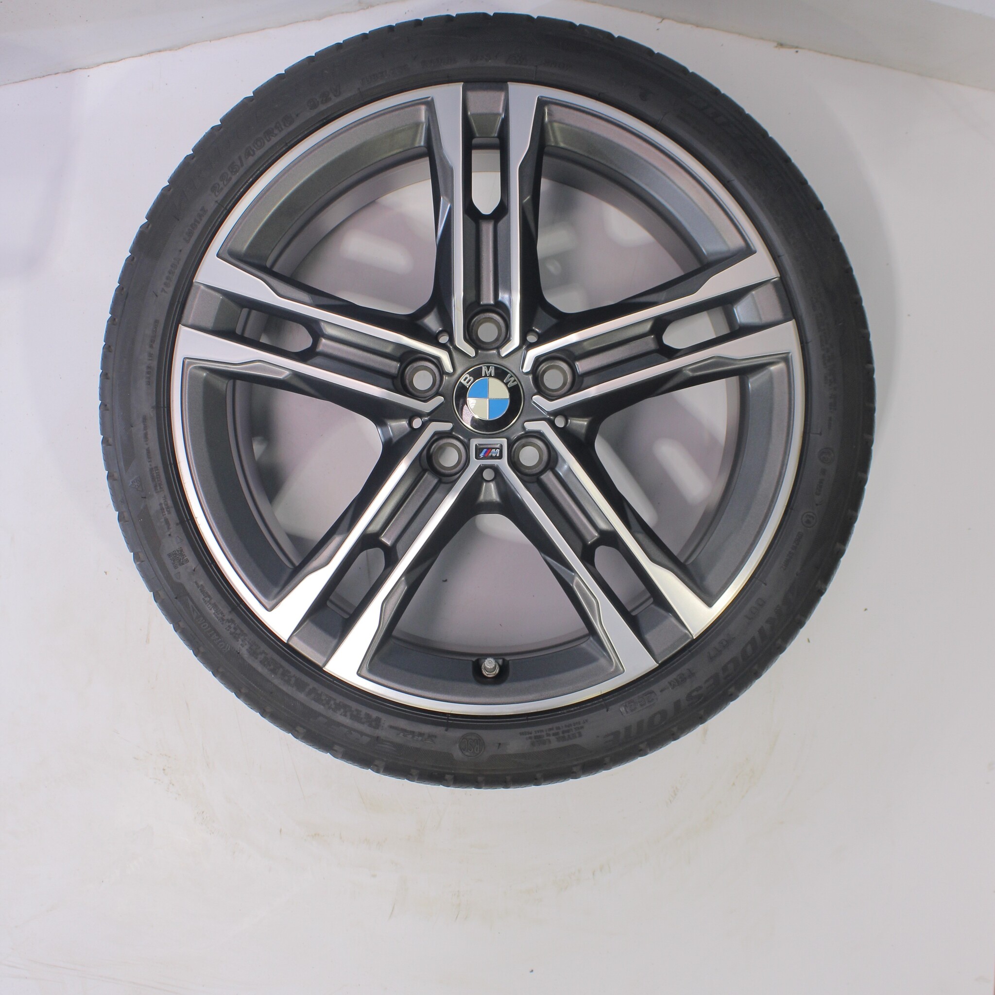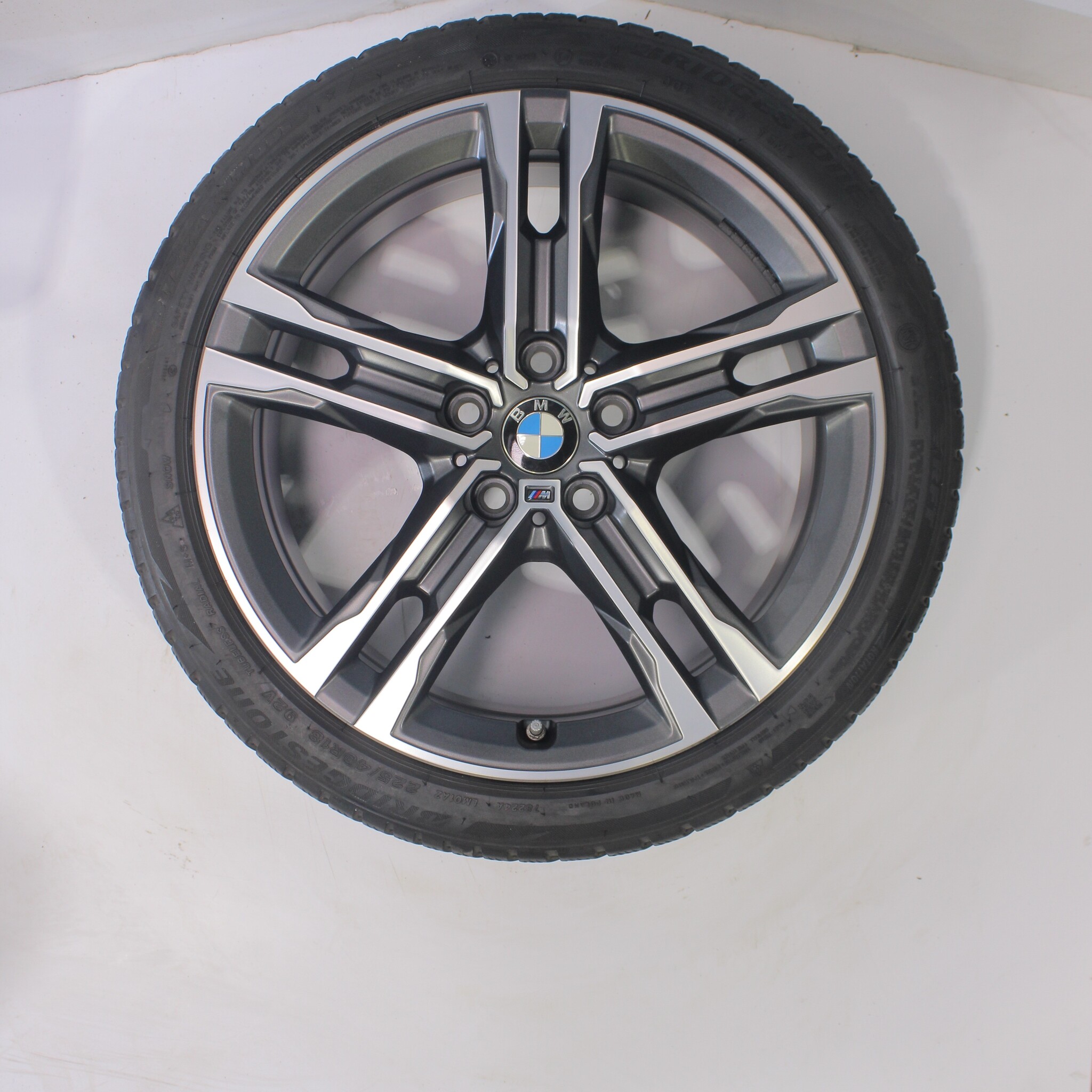 Original wheel set from BMW, styling 556M 18 inch rims with Bridgestone Blizzak LM001 Runflat Winter tires. These rims are original rims of the brand BMW and suitable for: BMW 1 2 series F40 F44 2 series Gran Coupe.
