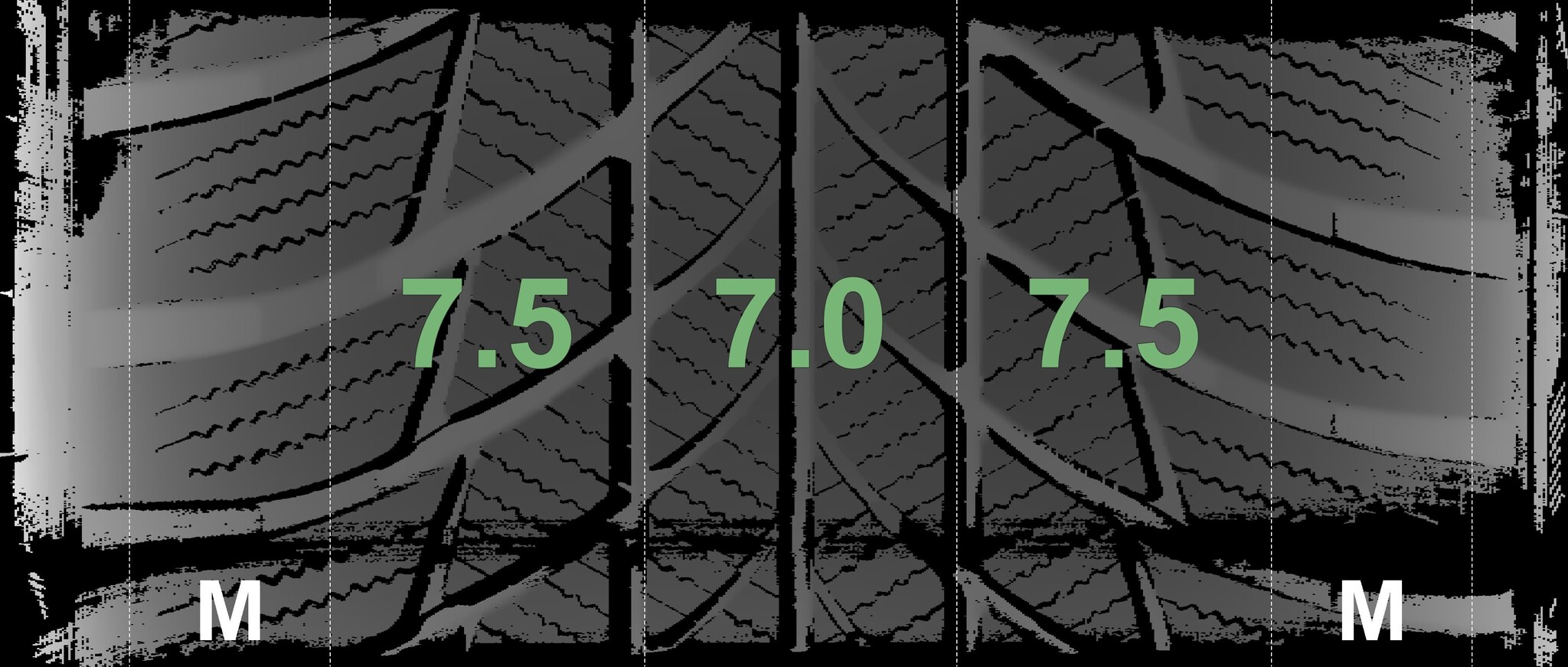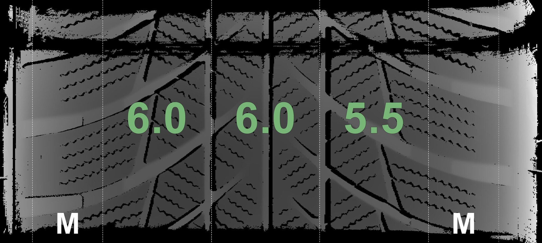 The measured tread depths and details of the rims are shown above.