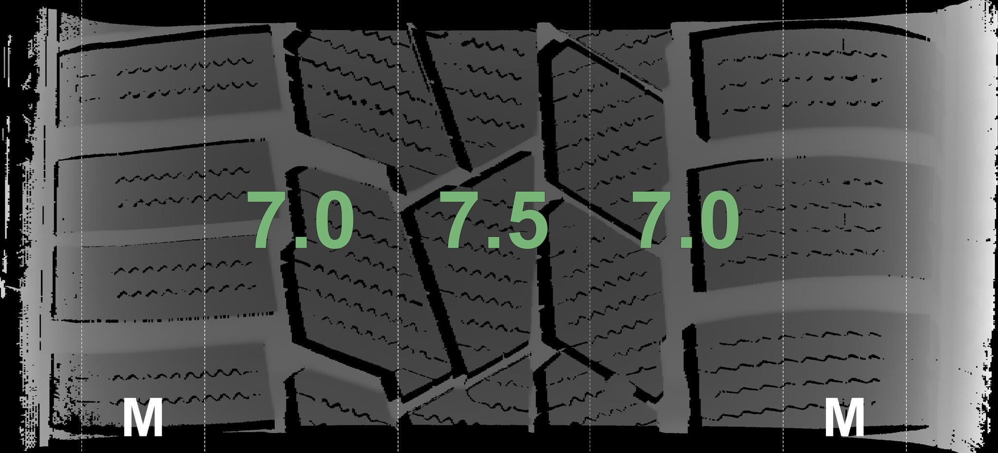 The measured tread depths and details of the rims are shown above.