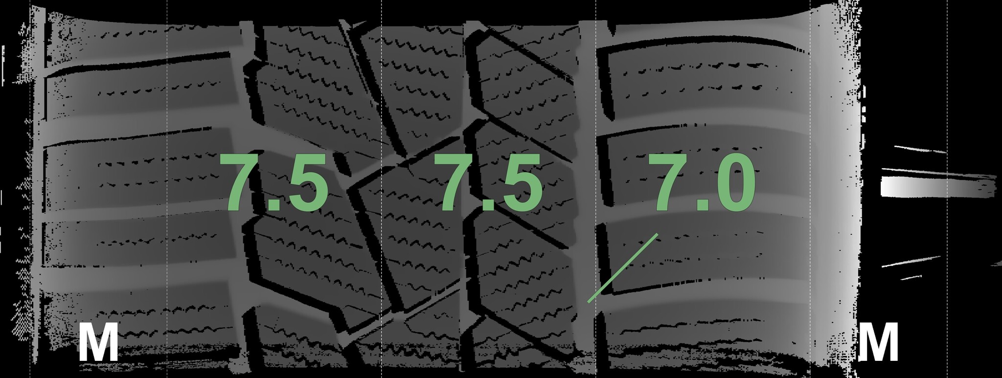 | Condition | Profile depth | DOT | Front Right | Used | 7.3 mm | 3920 |