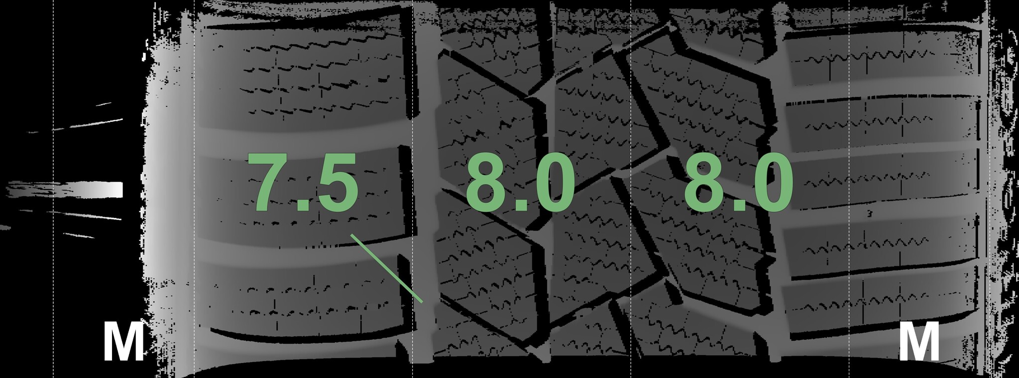 | Condition | Profile depth | DOT | Front Left | Used | 7.8 mm | 3920 |