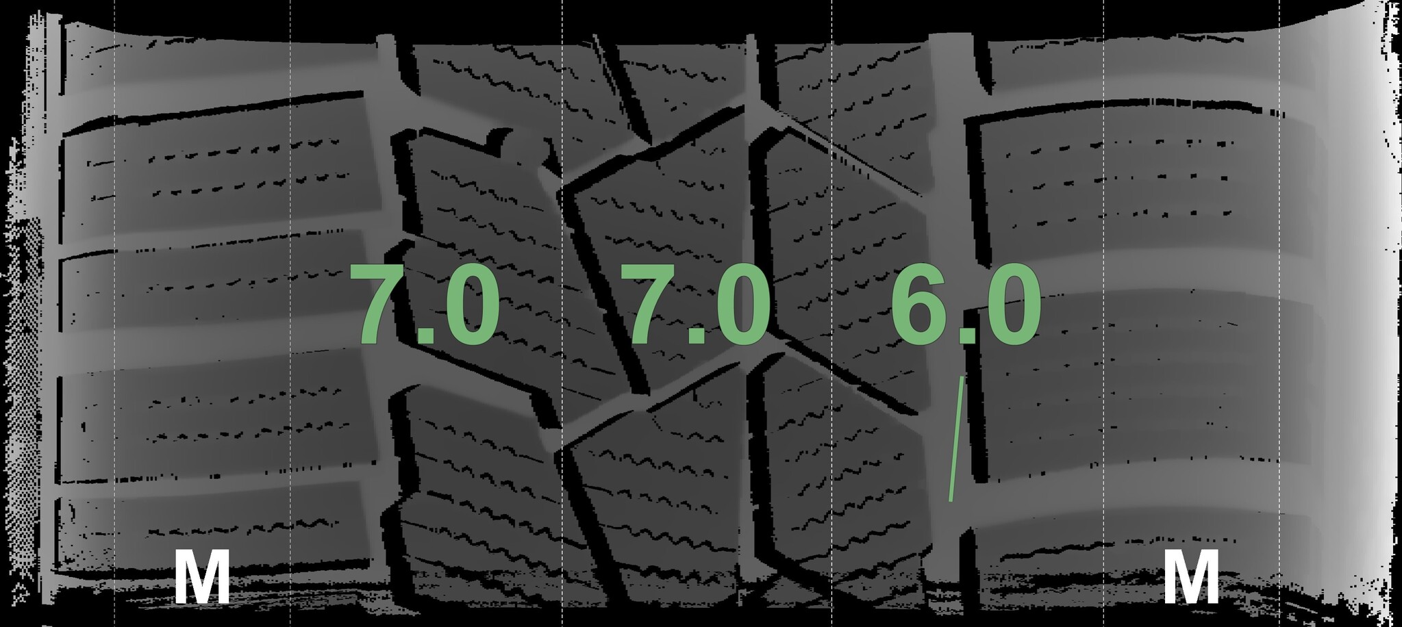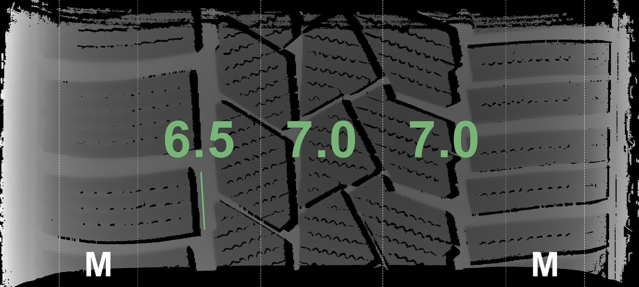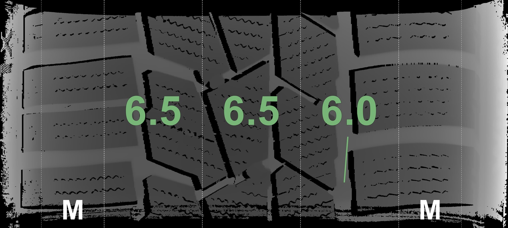 | Condition | Profile depth | DOT | Front Left | Used | 6.5 mm | 2720 |