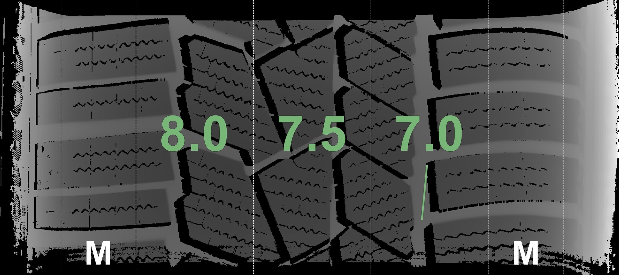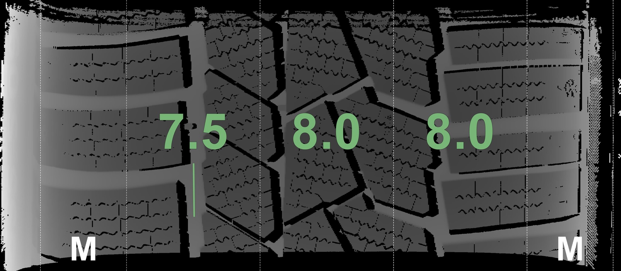 | Condition | Profile depth | DOT | Rear Right | Demo dots still visible | 7.8 mm | 4220 |