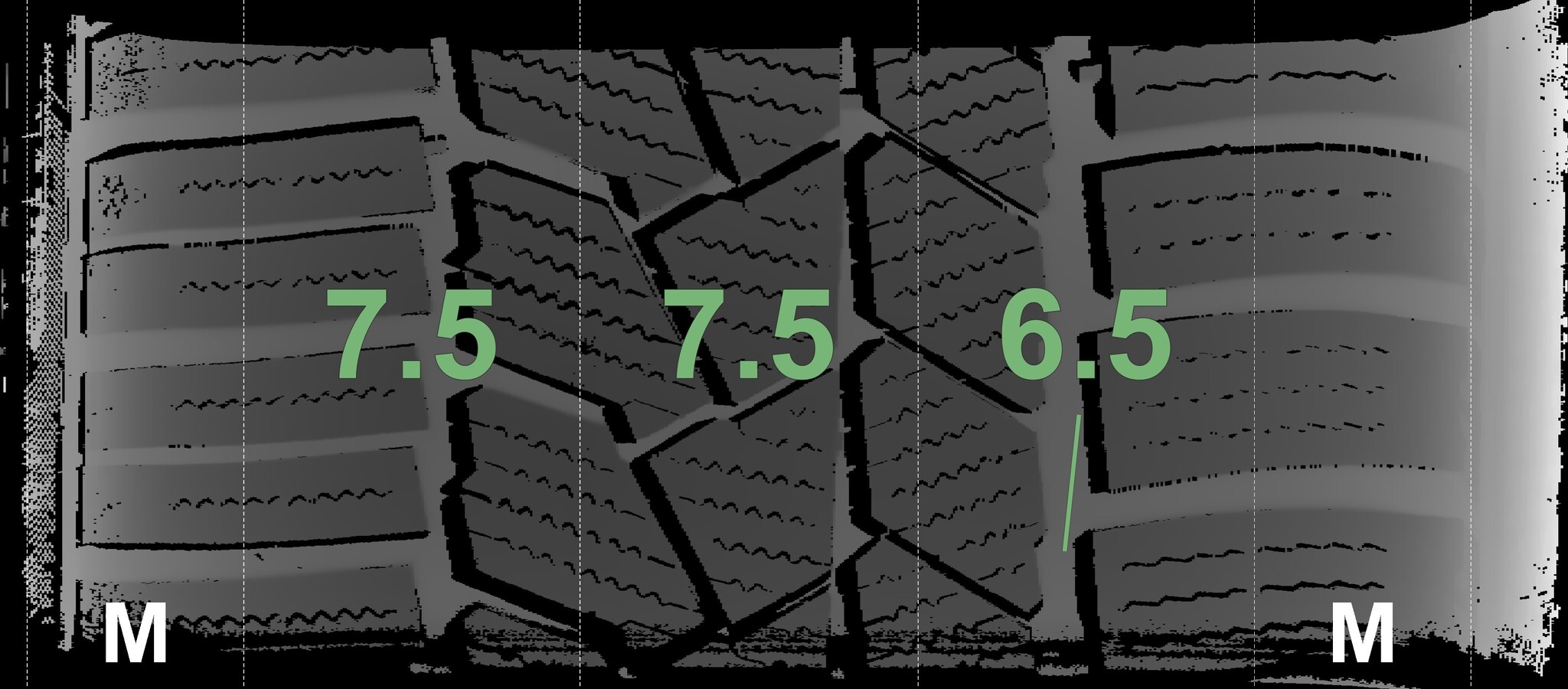 | Condition | Profile depth | DOT | Front Right | Used | 6.5 mm | 3720 |