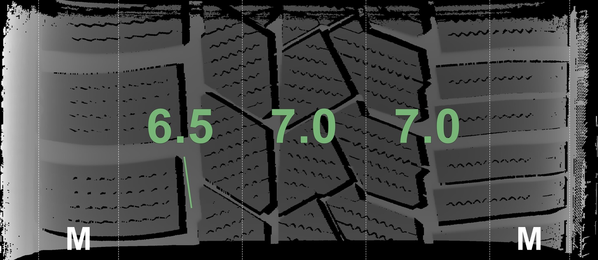 | Condition | Profile depth | DOT | Front Left | Used | 6.5 mm | 3720 |