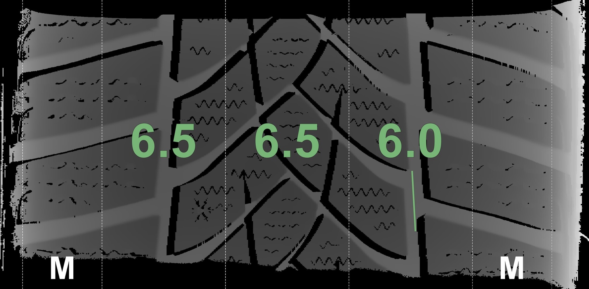 | Condition | Profile depth | DOT | Front Right | Used | 6.5 mm | 2519 |