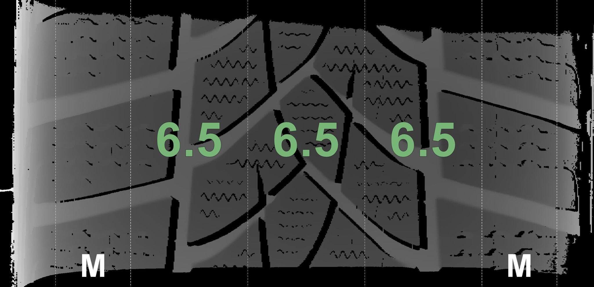 | Condition | Profile depth | DOT | Front Left | Used | 6.5 mm | 2519 |