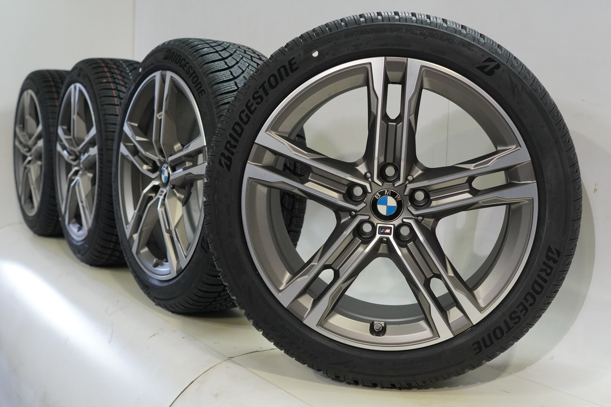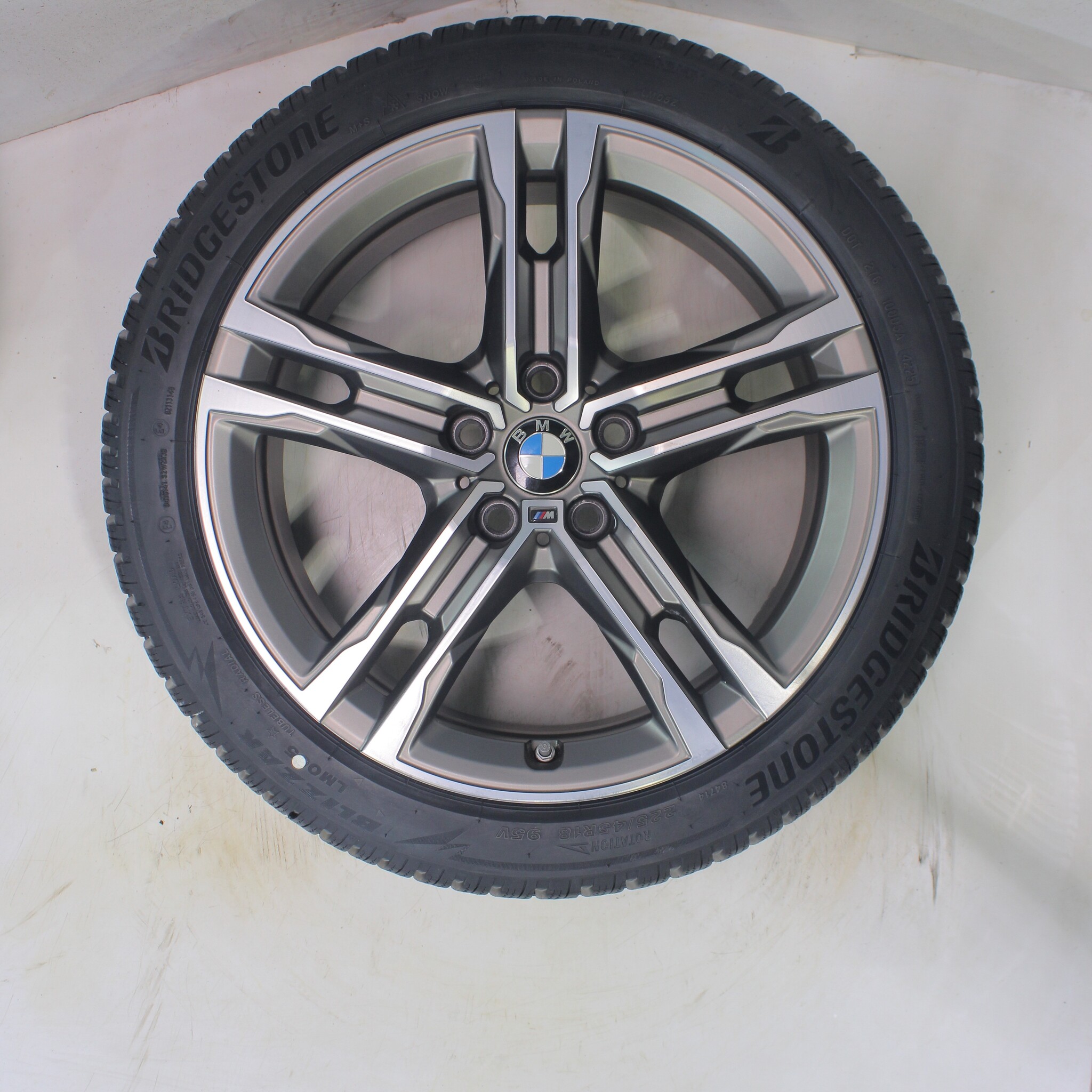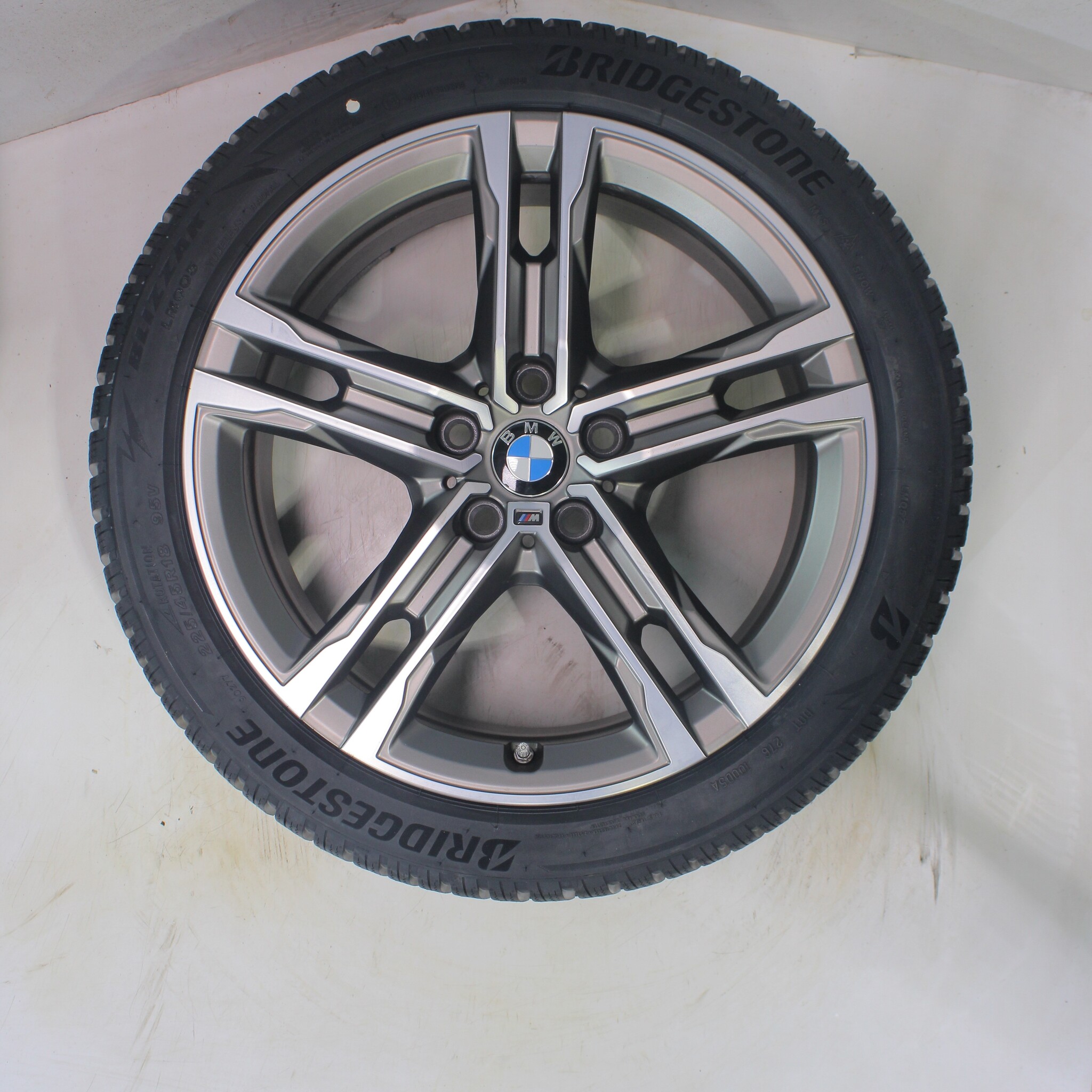 Original BMW wheelset, 18-inch rims with Bridgestone BLIZZAK LM005 winter tires. These rims are original BMW brand rims and suitable for: BMW 1er 2er F70 F74.