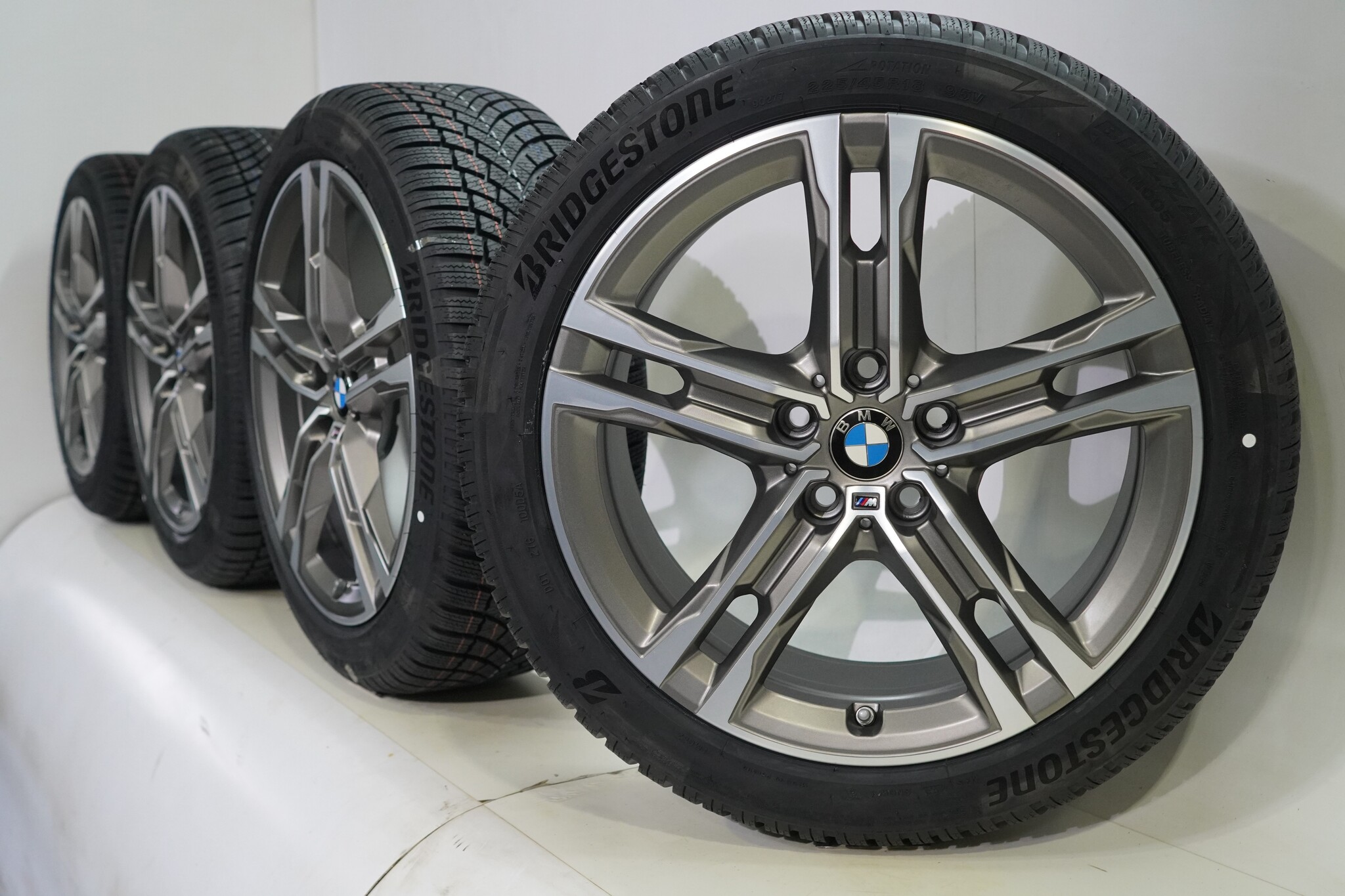 Original BMW wheelset, styling 556M, 18-inch rims with Bridgestone BLIZZAK LM005 winter tires. These rims are original BMW brand rims and suitable for: BMW 1er 2er F70 F74.