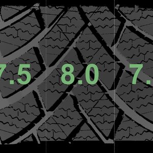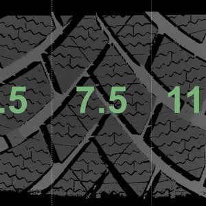 The measured tread depths and the details of the rims are shown above.