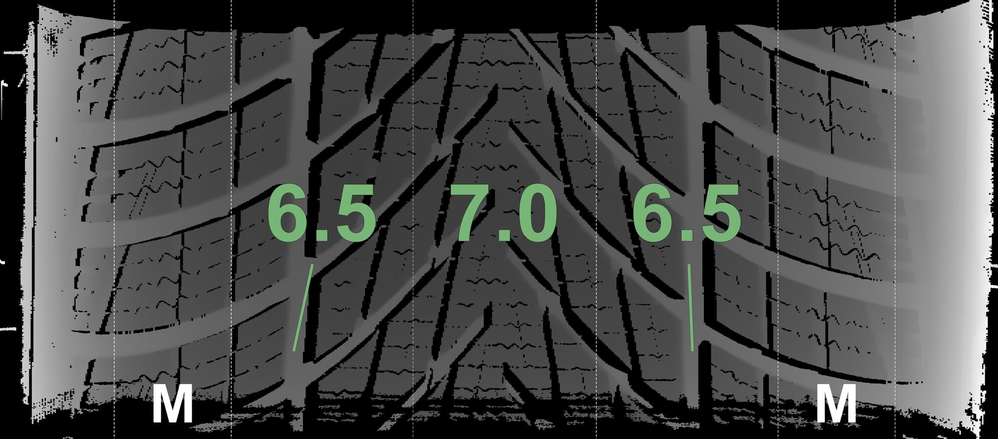 | Condition | Profile depth | DOT | Front Right | Used | 6.7 mm | 3725 |